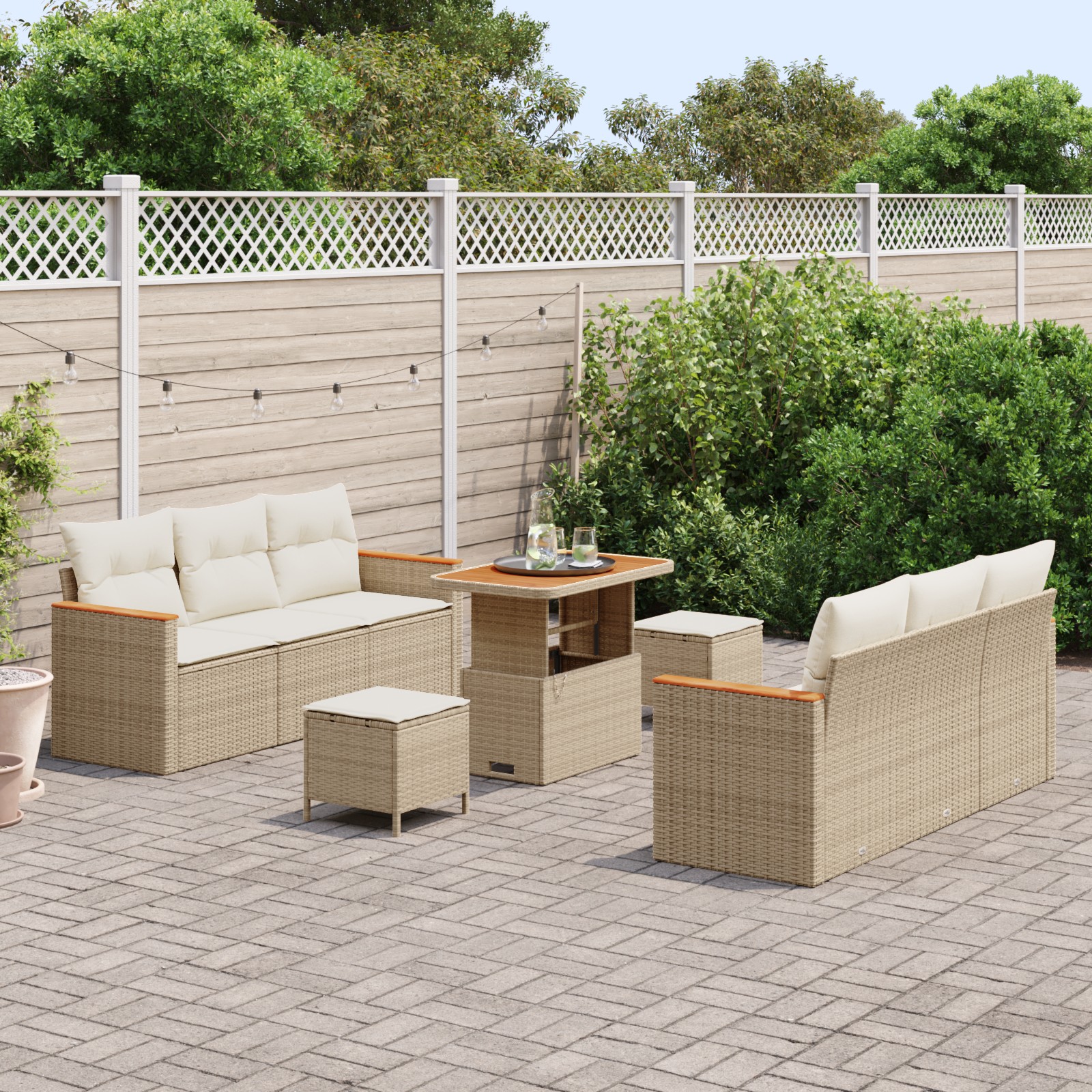 Set de canapele pentru grădină cu pernă 9 pcs Bej Rattan poli