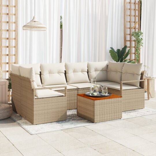 Set de canapele pentru grădină cu pernă 7 pcs Bej Rattan poli