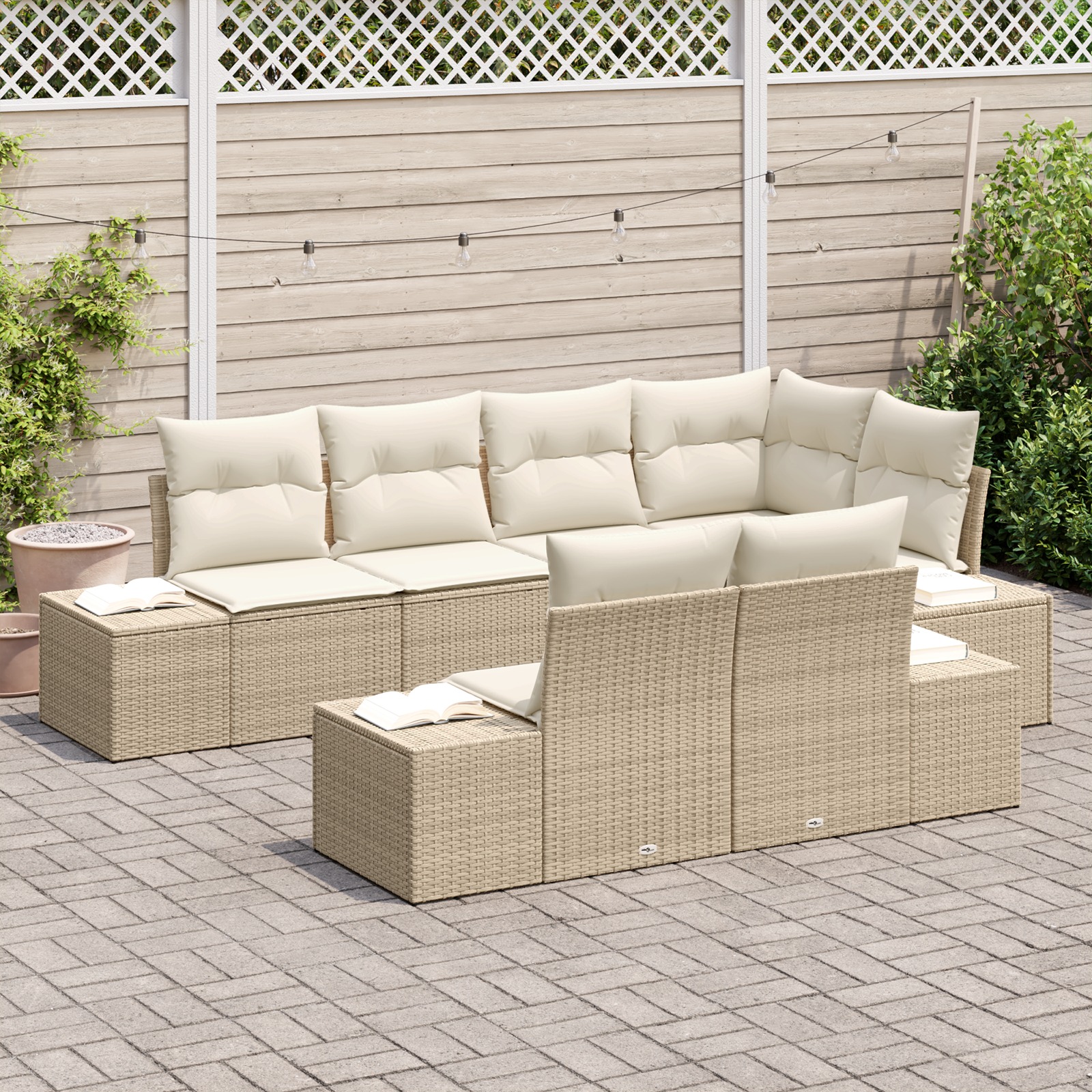 Canapeaua aceasta rectangulară de exterior pentru 7 persoane are un aspect chic care îmbunătățește orice grădină sau terasă. E gândită să se potrivească perfect cu exteriorul, fie că petreci timp cu prietenii la un grătar sau doar te relaxezi. Totul e despre eleganță și confort.
