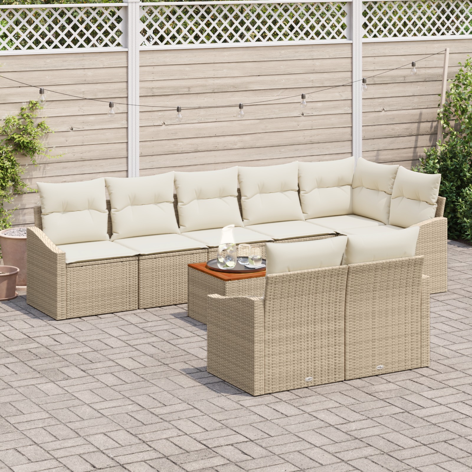 Set de canapele pentru grădină cu pernă 9 pcs Bej Rattan poli