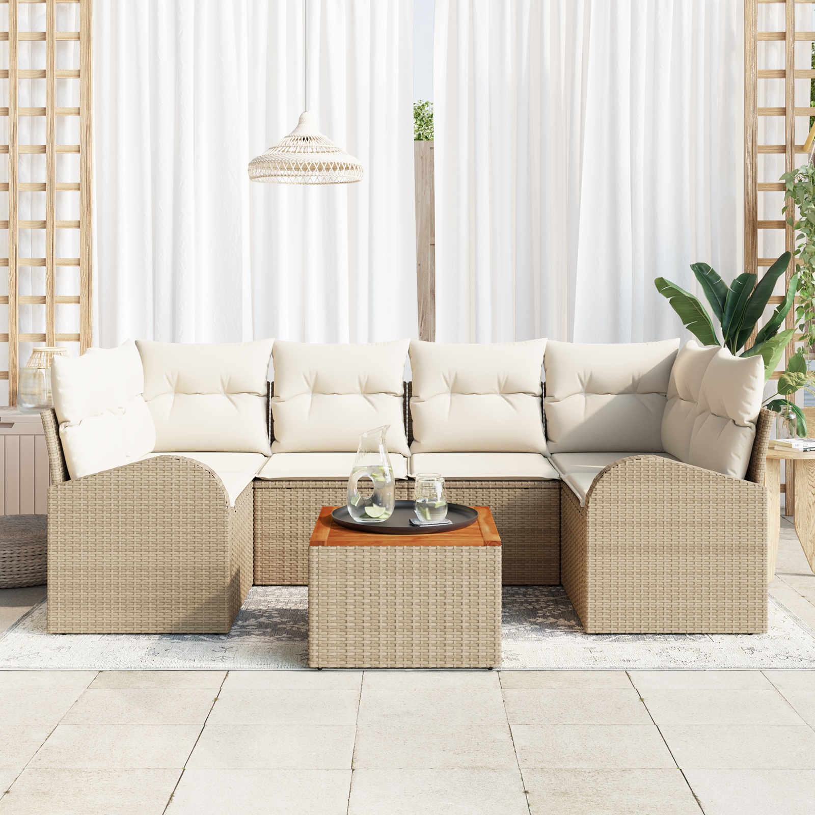 Set de canapele pentru grădină 7 pcs Bej Rattan poli