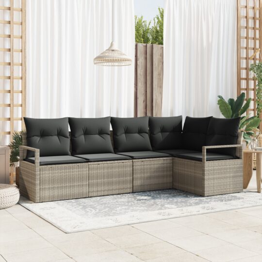 Set de canapele pentru grădină cu pernă 5 pcs Gri deschis