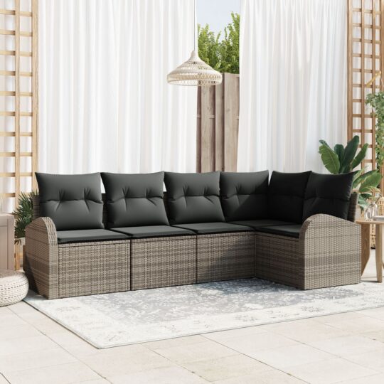 Set de canapele pentru grădină cu pernă 5 pcs Gri Rattan poli