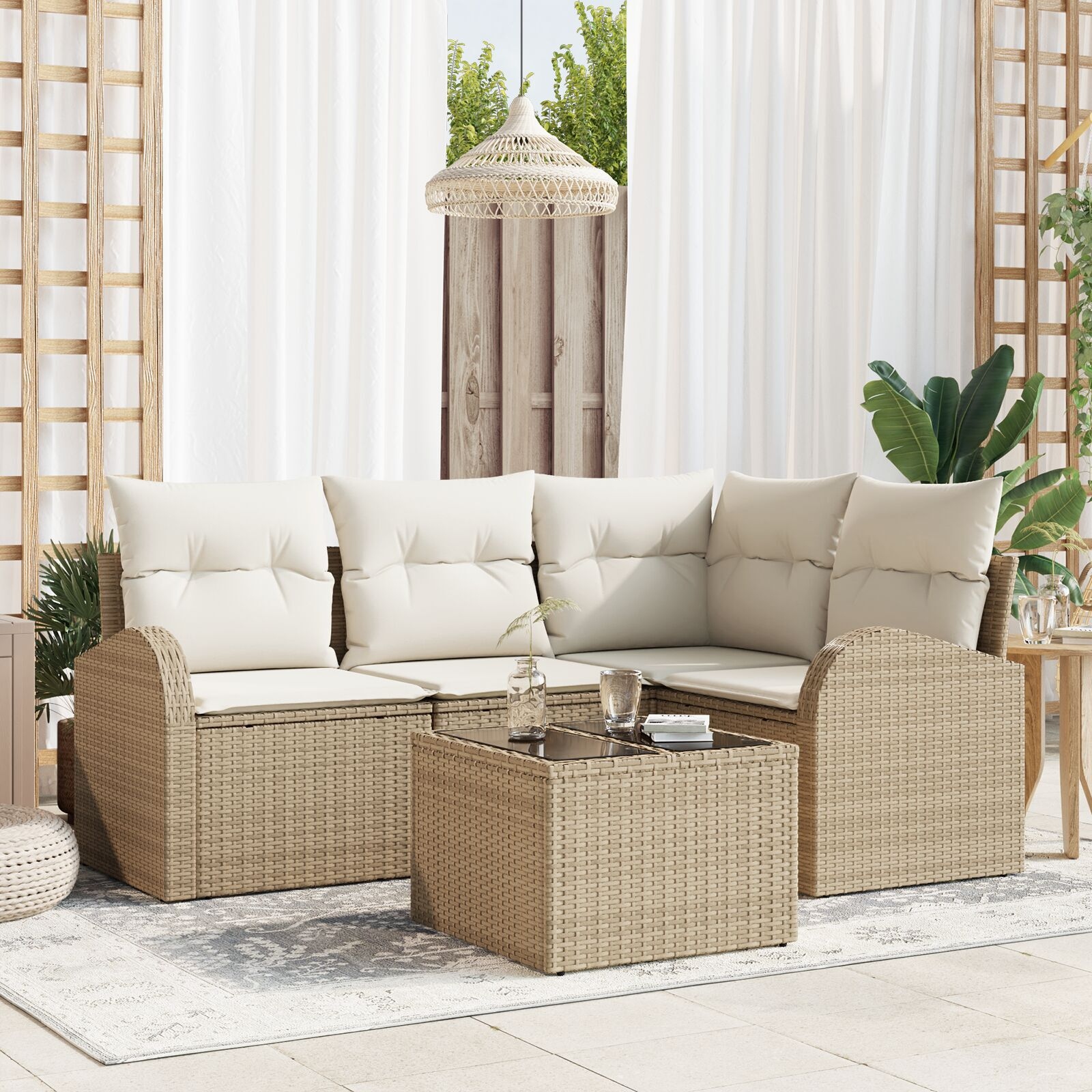 Set de canapele pentru grădină cu pernă 5 pcs Bej Rattan poli