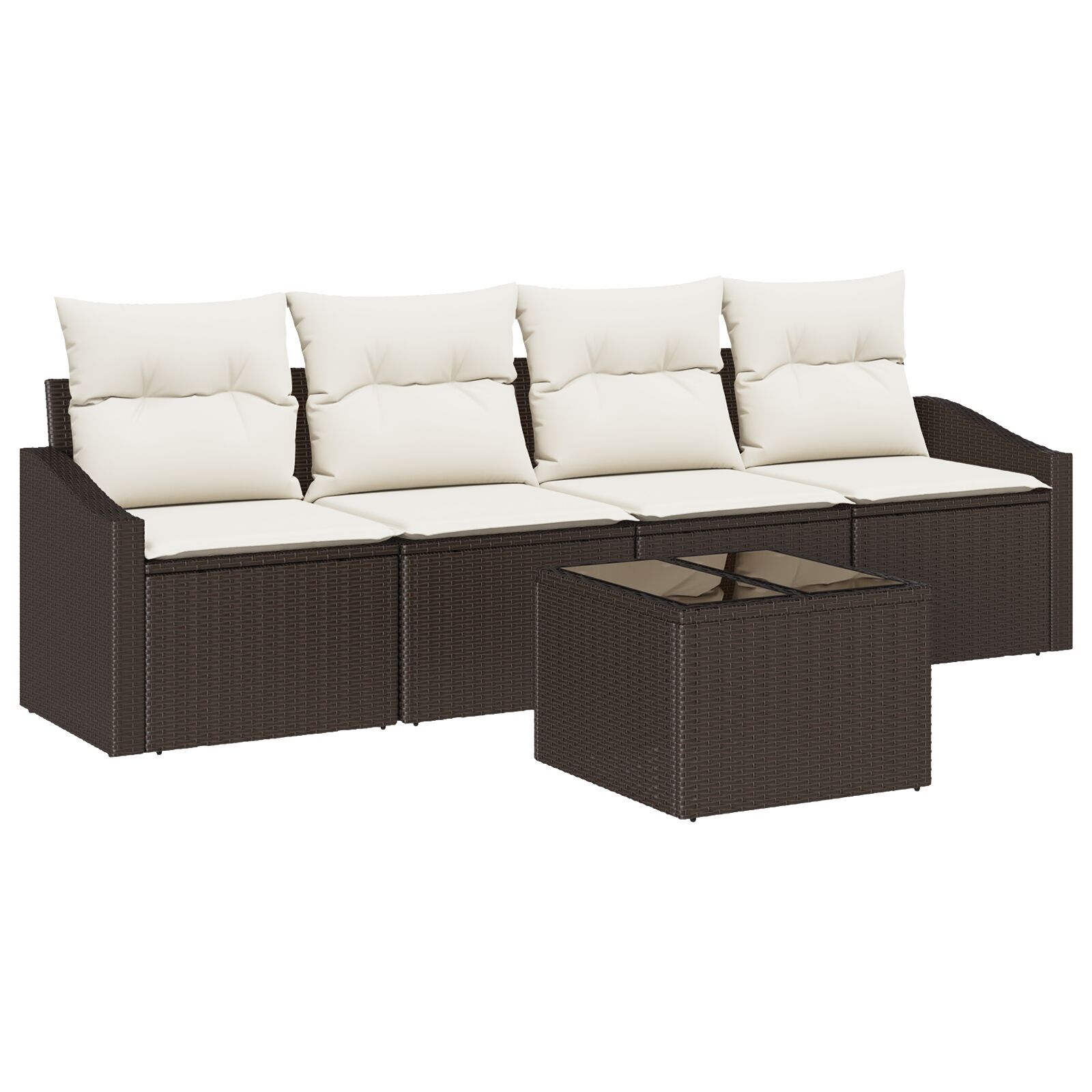 Set de canapele pentru grădină cu pernă 5 pcs Maro și Crem