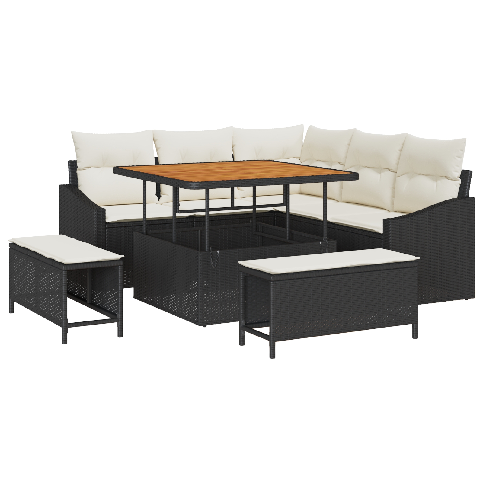 Set de canapele pentru grădină cu pernă 8 pcs Negru Rattan poli