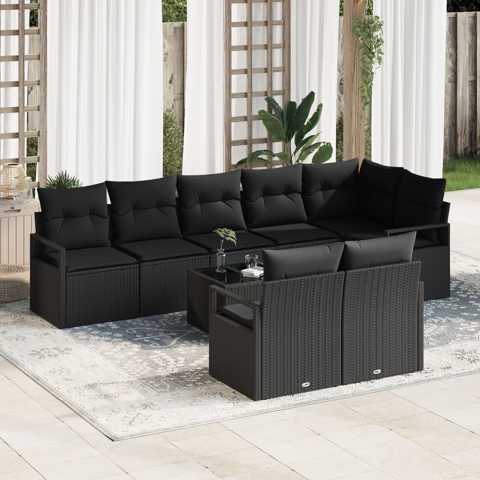 Set de canapele pentru grădină 9 pcs Negru Rattan poli