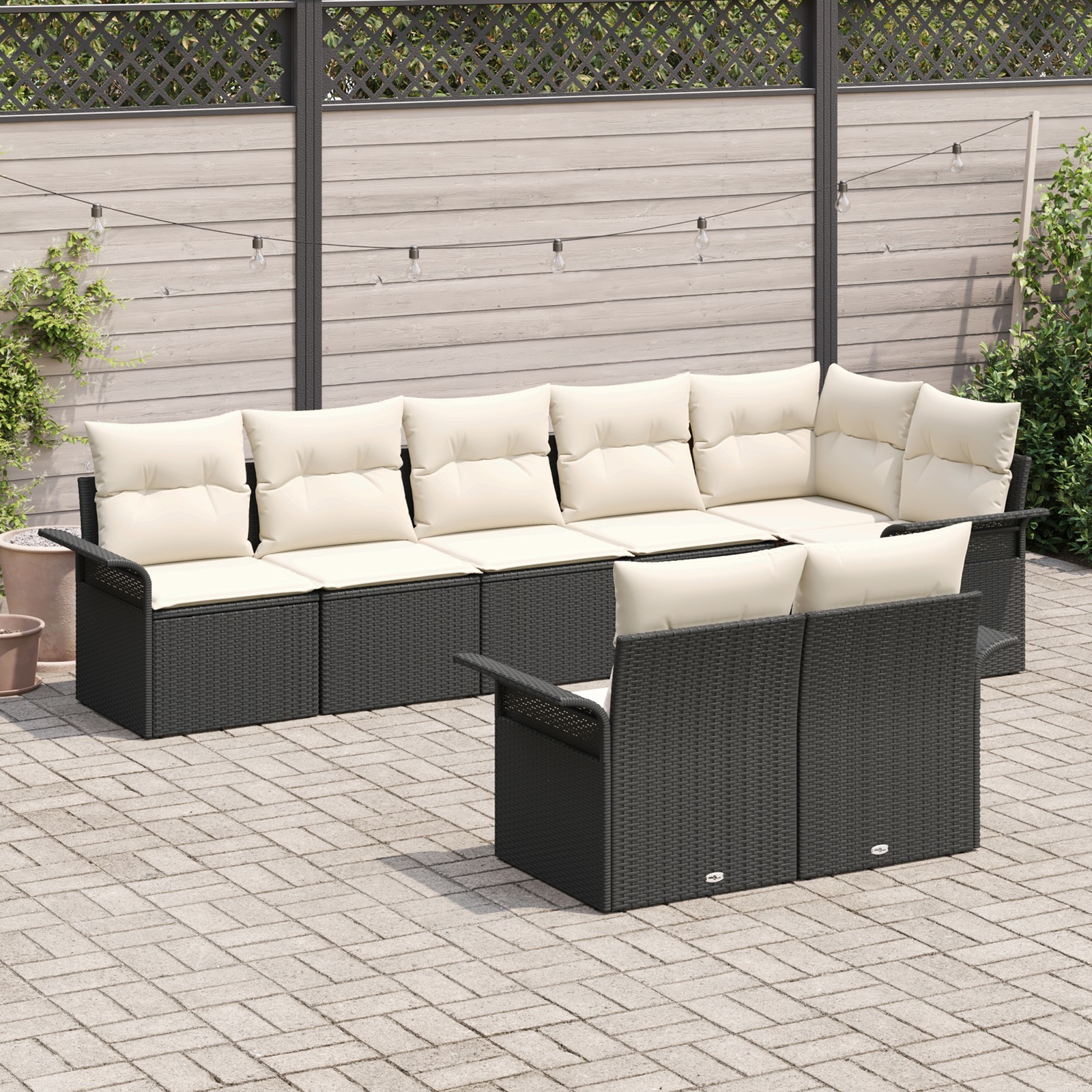 Set de canapele pentru grădină cu pernă 8 pcs Negru Rattan poli