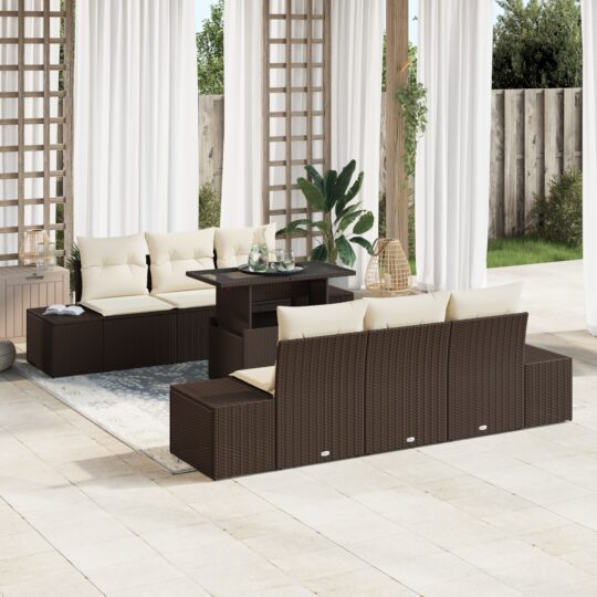 Set de canapele pentru grădină cu pernă 7 pcs maro și crem
