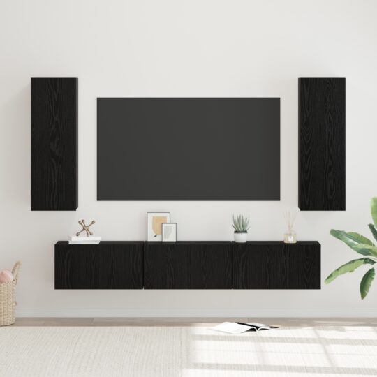 Set comodă TV 5 pcs Stejar negru Mediu 30.5 x 30 x 90 cm