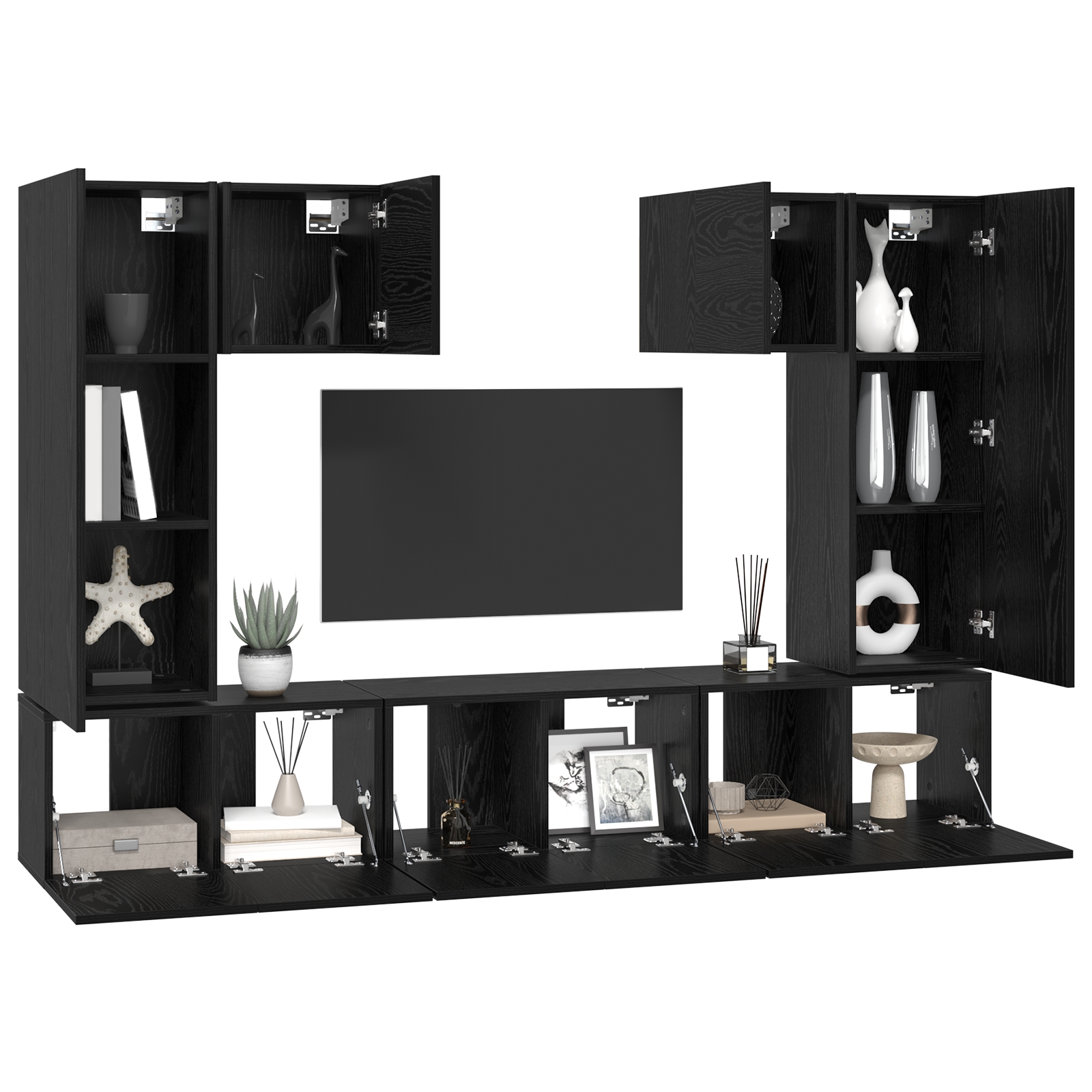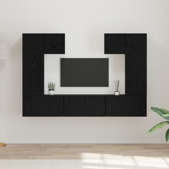 Set comodă TV Pe perete 7 pcs Stejar negru 180 x 30 x 120 cm