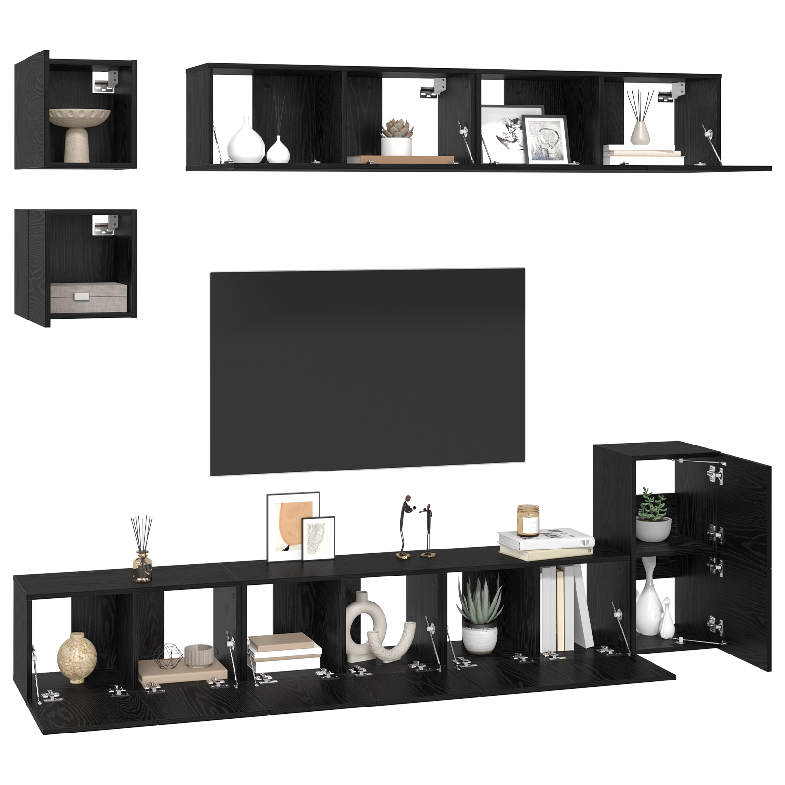 Set comodă TV Pe perete 8 pcs Stejar Negru Lemn compozit