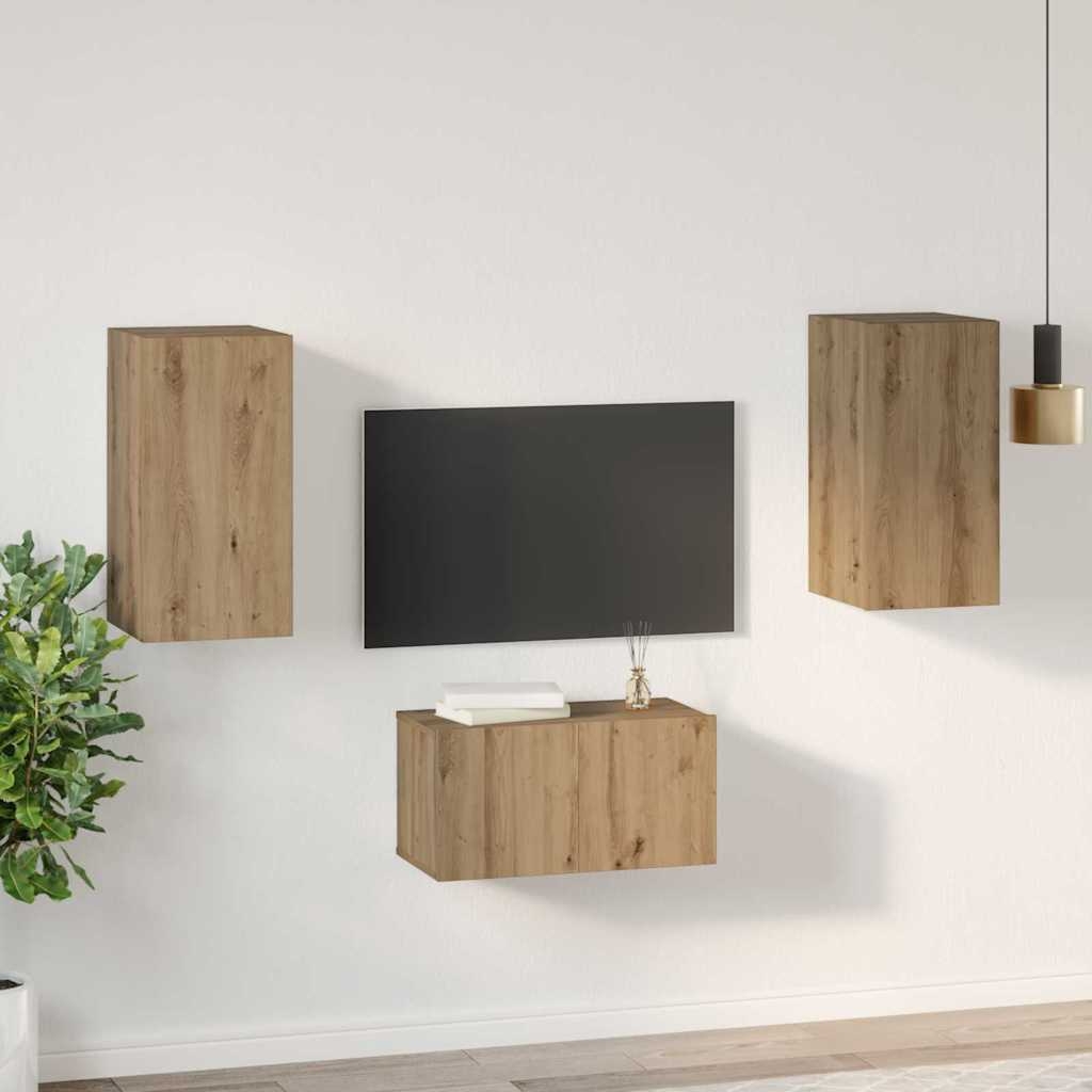 Set comodă TV Pe perete 3 pcs stejar artizanal 60 x 30 x 30 cm