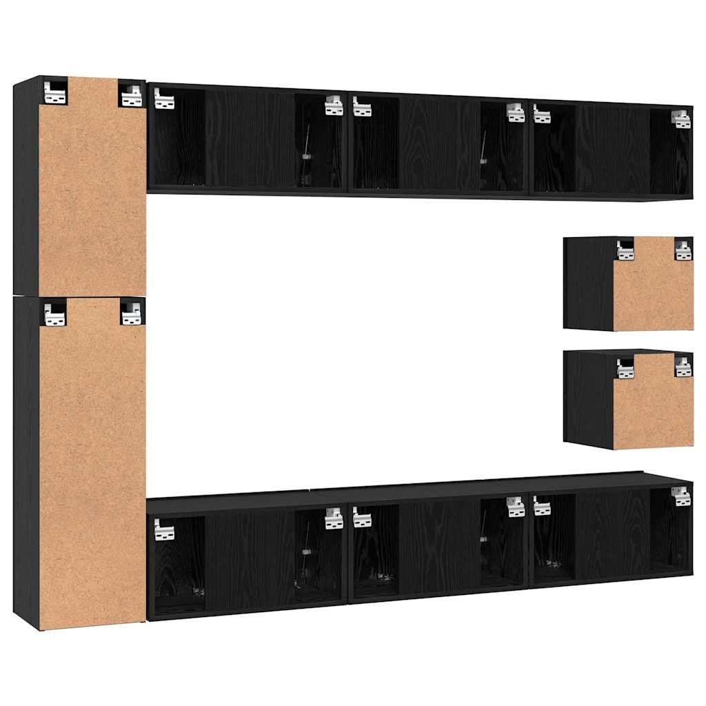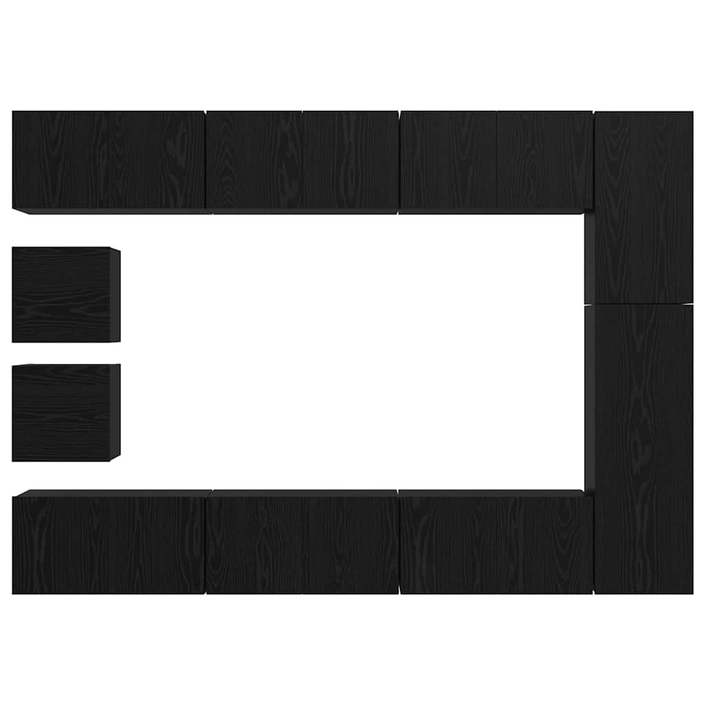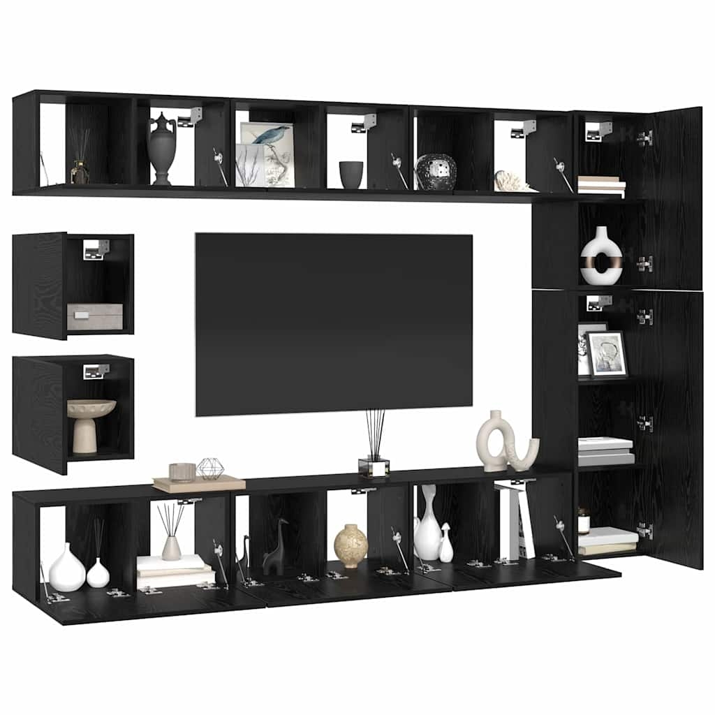 Set comodă TV Pe perete 10 pcs Stejar negru Lemn compozit