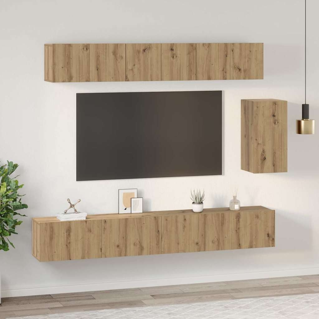 Set comodă TV cu sertar 6 pcs stejar artizanal 100 x 30 x 30 cm