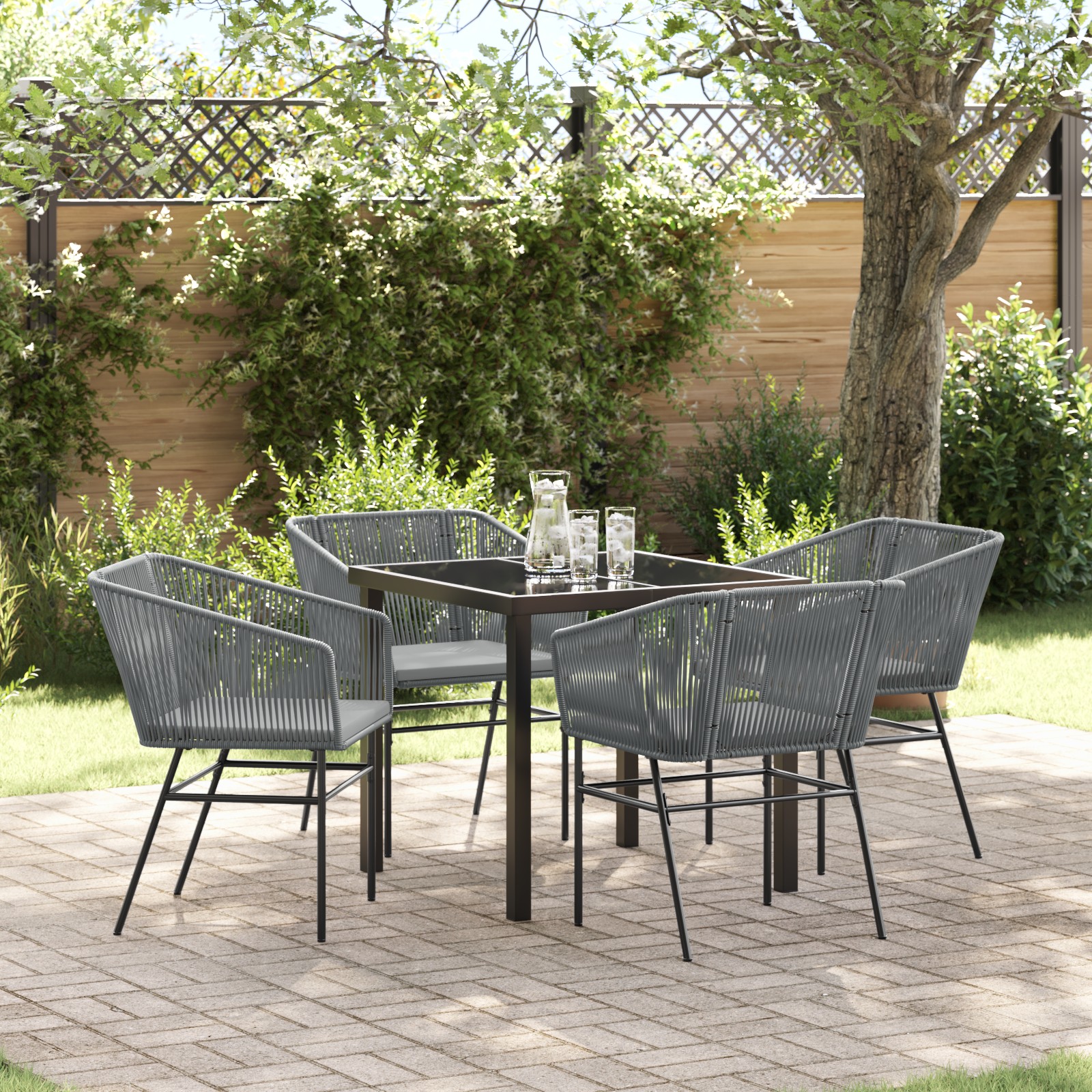 Setul ăsta modern pentru grădină e alegerea perfectă dacă vrei un design elegant și funcțional, ideal pentru cei care iubesc mesele în aer liber. E făcut să se potrivească în orice grădină sau terasă modernă, cu linii curate și un stil simplu care îi dă un farmec clasic. Imaginează-ți un brunch relaxat de vară sau o cină la apus, cu acest set care aduce sofisticare și căldură întâlnirilor tale.