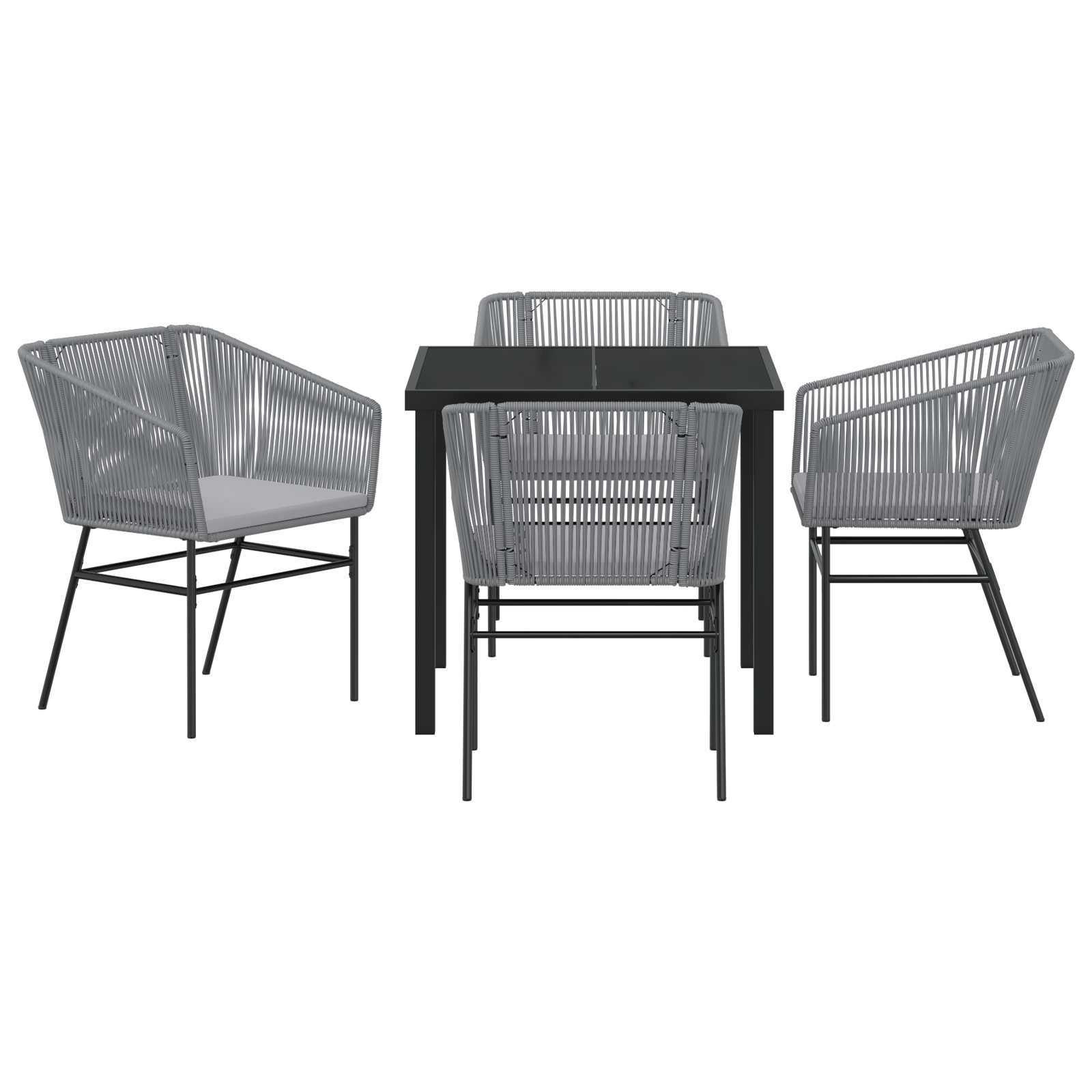 • Componente incluse: Bucură-te de momente de relaxare cu blatul din sticlă securizată, perfect pentru râsete și discuții ușoare în jurul meselor pline de bunătăți. Spătarele și brațele din poliratan țesut fin oferă confort, iar picioarele din oțel vopsit electrostatic răspund bine la utilizare. Toate aceste elemente lucrează împreună pentru satisfacție de lungă durată și ușurință în utilizare.