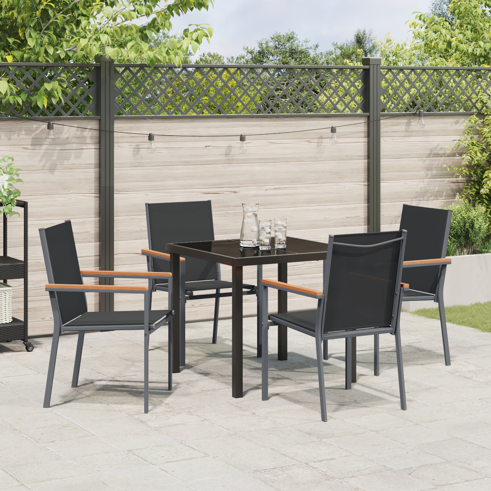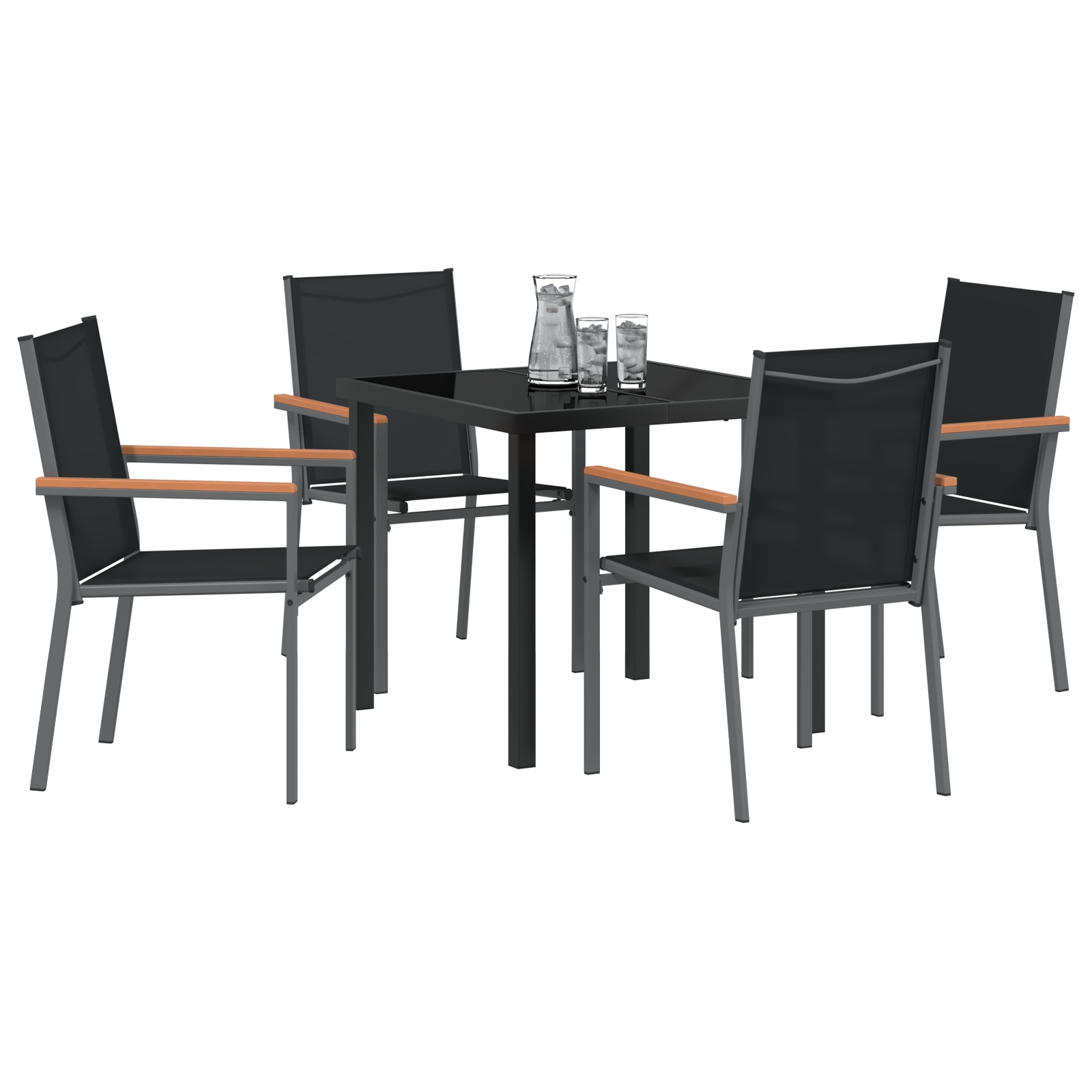 Set de masă pentru grădină 5 pcs Negru Textilene și oțel