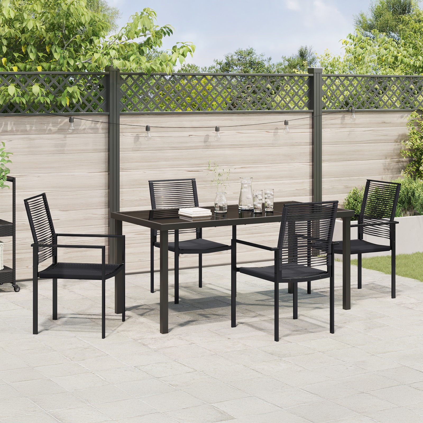 - Materiale rezistente la UV Setul de dining e construit să reziste la soare, așa că își păstrează culoarea și forma, arătând bine pentru multe sezoane.