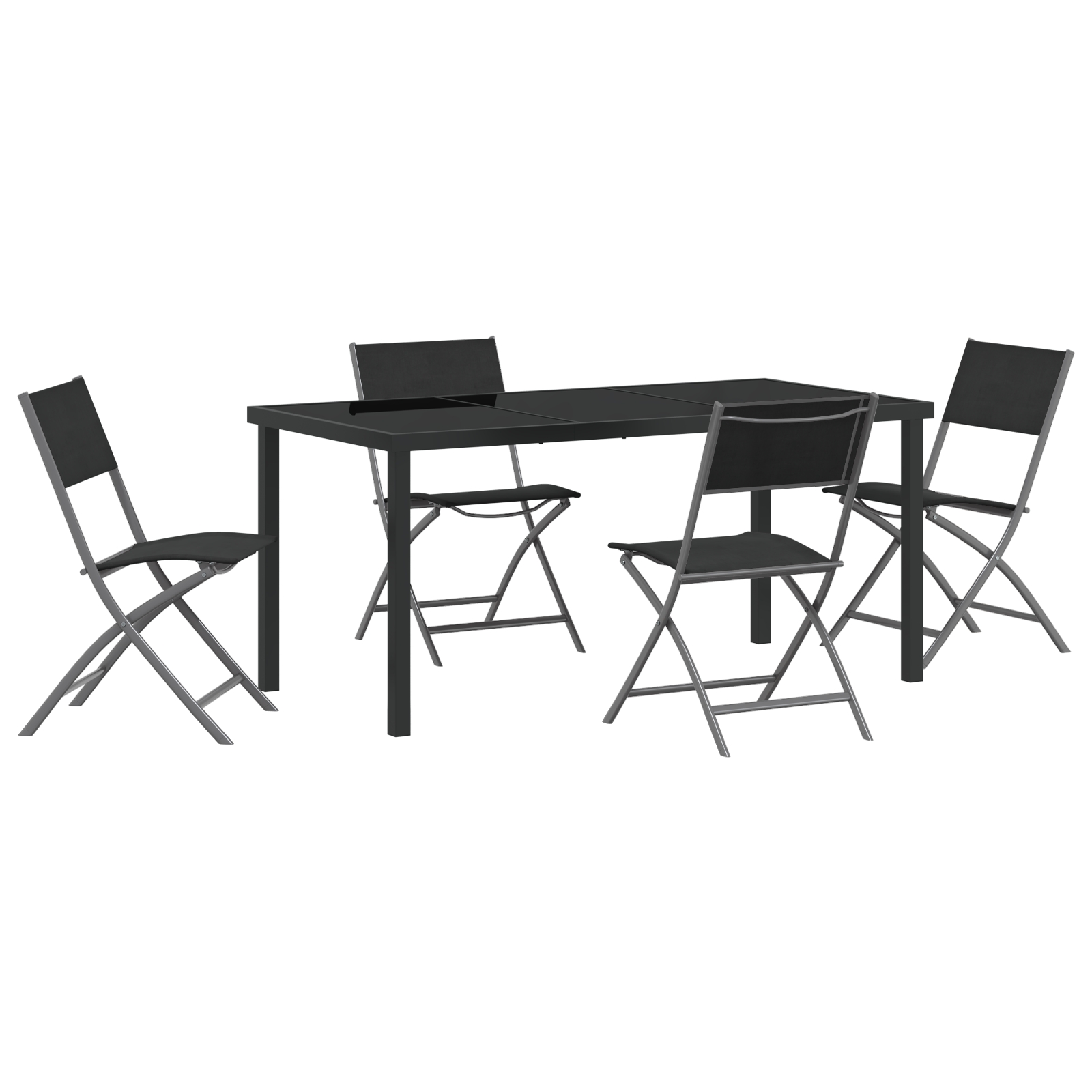 Set de masă pentru grădină 5 pcs Negru Textilene și oțel