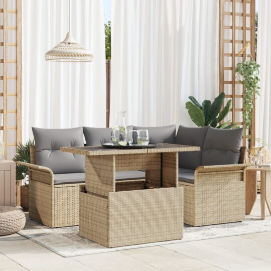 Set de canapele pentru grădină cu pernă 5 pcs Bej Rattan poli