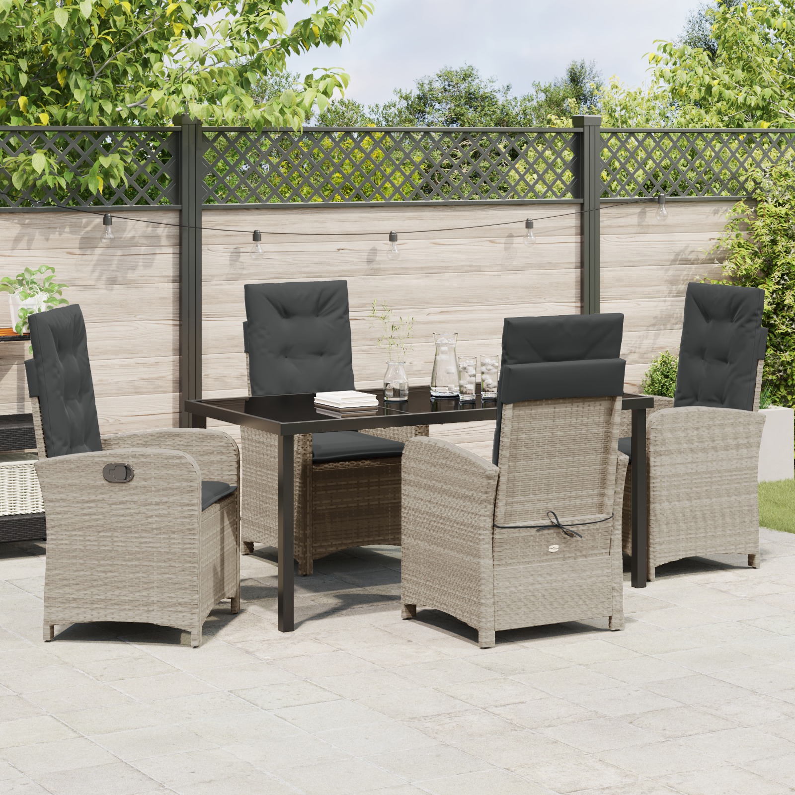 Setul ăsta modern de dining pentru grădină e perfect pentru cei care iubesc designul modern și viața în aer liber. Cu vibe-ul lui sleek și minimalist, și linii clare, face ca orice grădină sau terasă să arate super bine, ideal pentru mese de vară sau pentru a petrece timp cu familia și prietenii. Aspectul ăsta elegant vine din construcția din poliratan, care combină stilul cu practicitatea.
