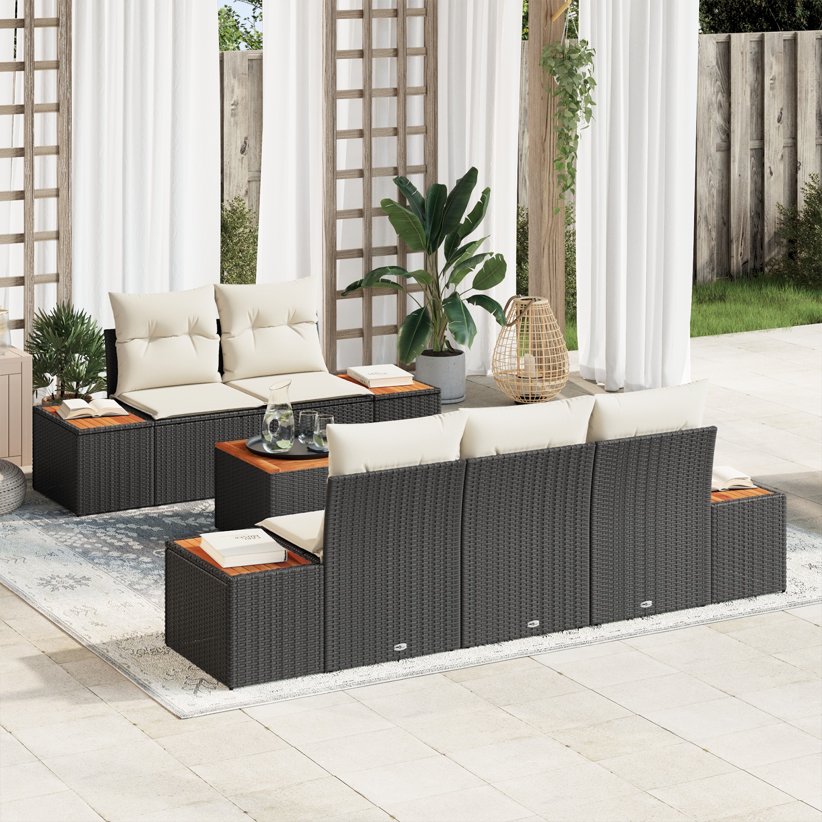 Set de canapele pentru grădină cu pernă 6 pcs Negru Rattan poli