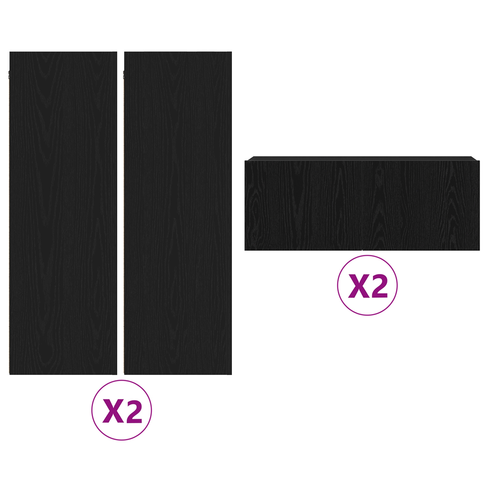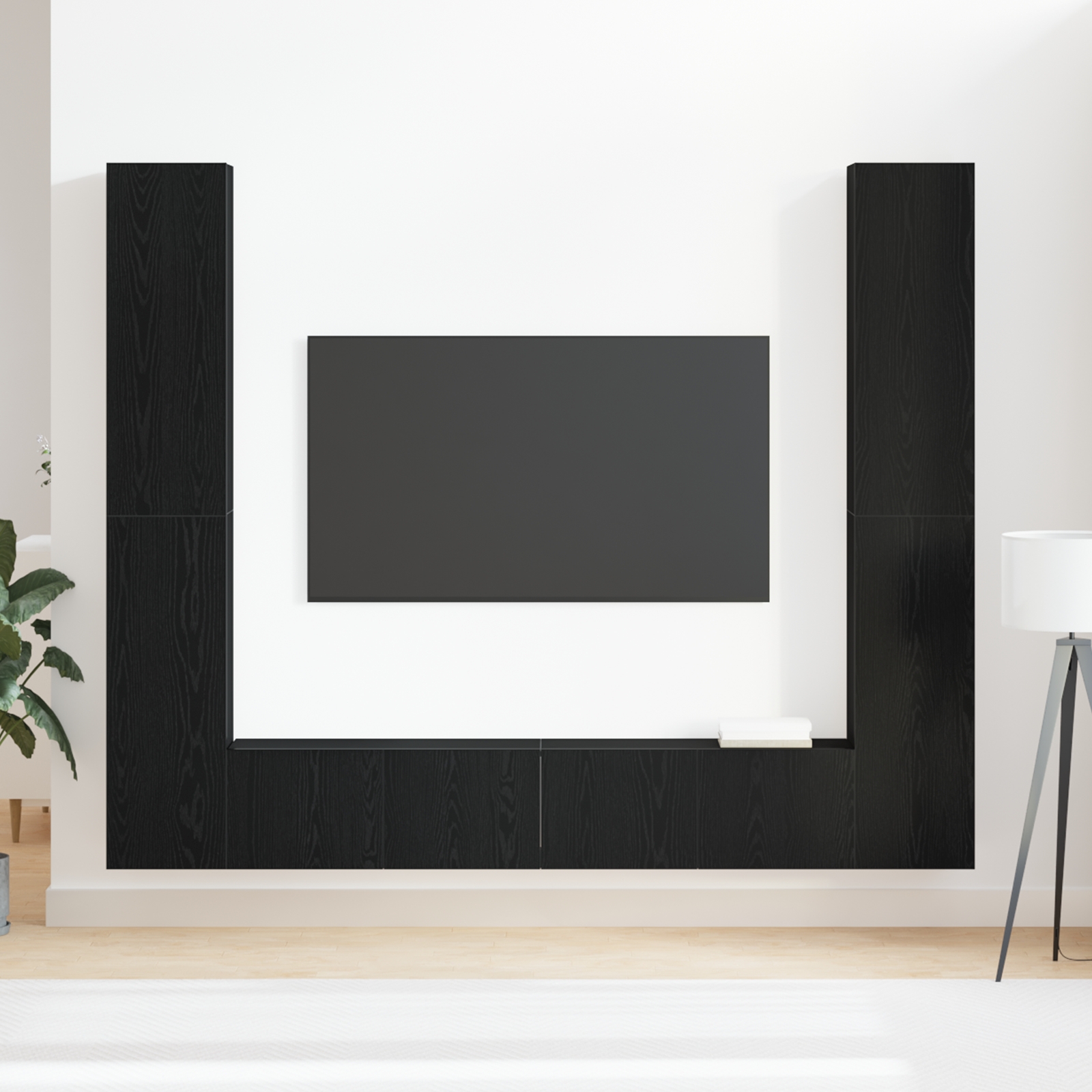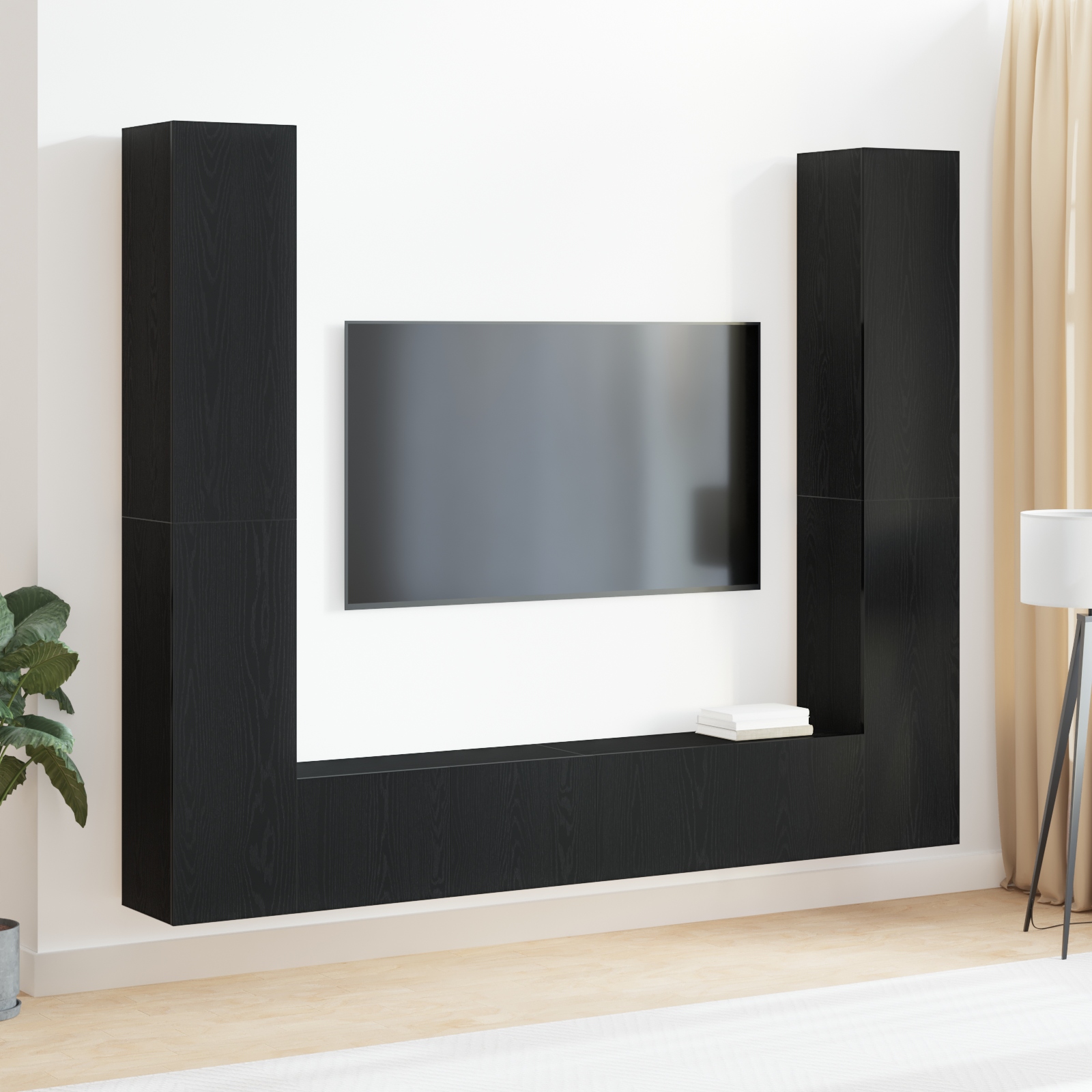 Set de 6 piese pentru birou TV – Montat pe perete, lemn prelucrat de stejar negru