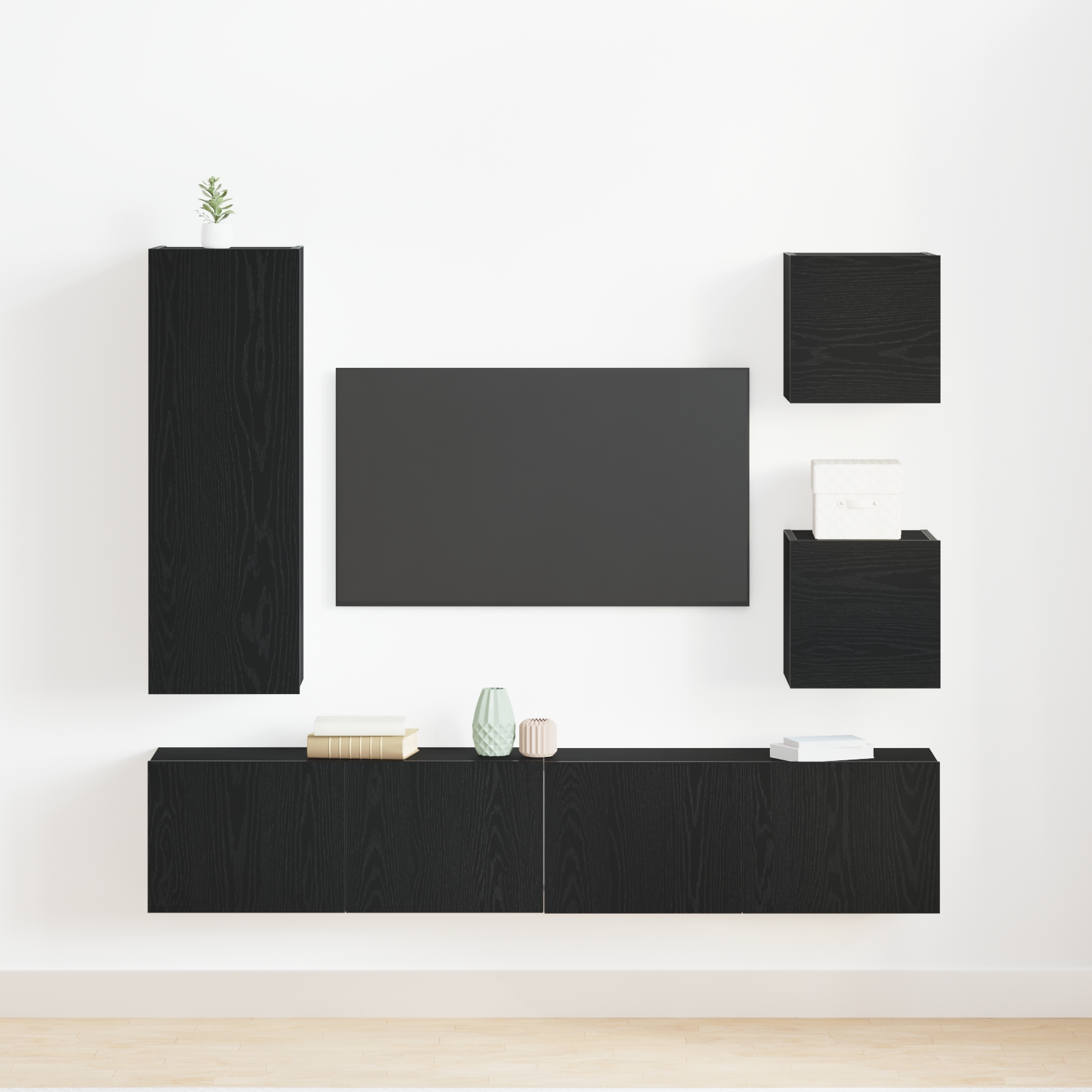 - Componente Incluse: Cu uși cu balamale și accesorii pentru montare pe perete, setul de cabinet TV include compartimente spațioase, ideale pentru organizarea gadgeturilor sau a decorațiunilor. Ușile cu balamale fac accesul rapid la lucruri, iar designul montat pe perete economisește spațiu, fiind perfect pentru zone mai mici și menținând totul ordonat.