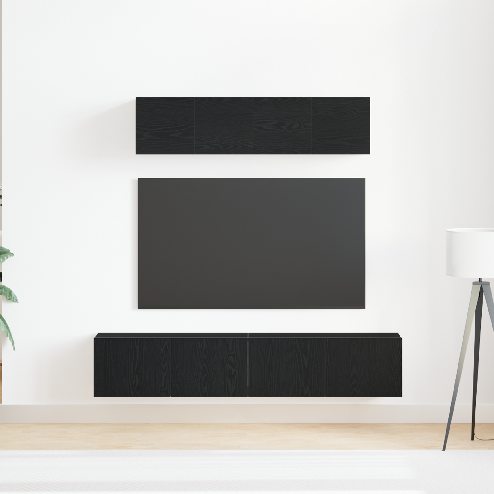 Set de mobilă TV – Pe perete, Stejar negru, Lemn stratificat