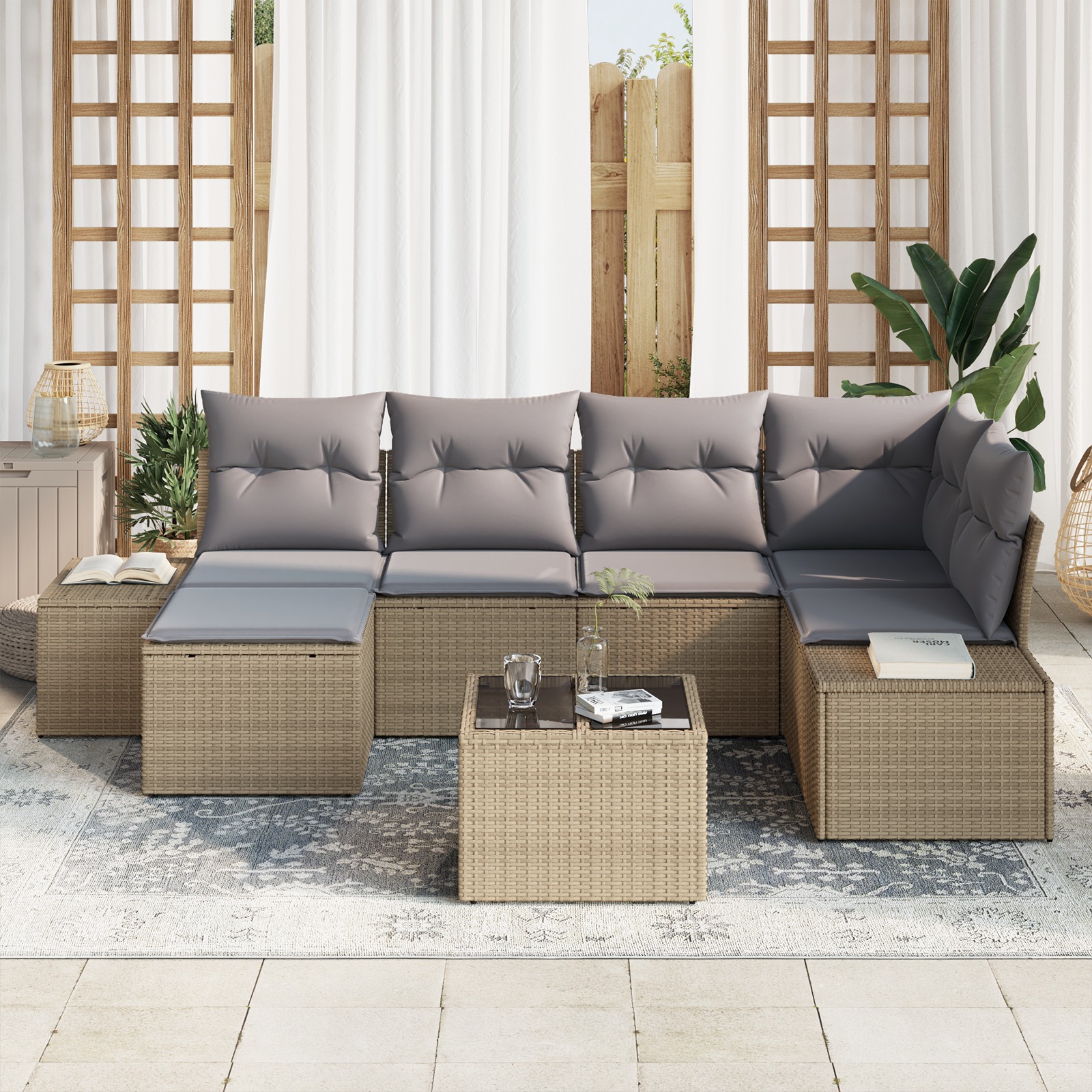 Set de canapele pentru grădină 7 pcs bej și gri deschis