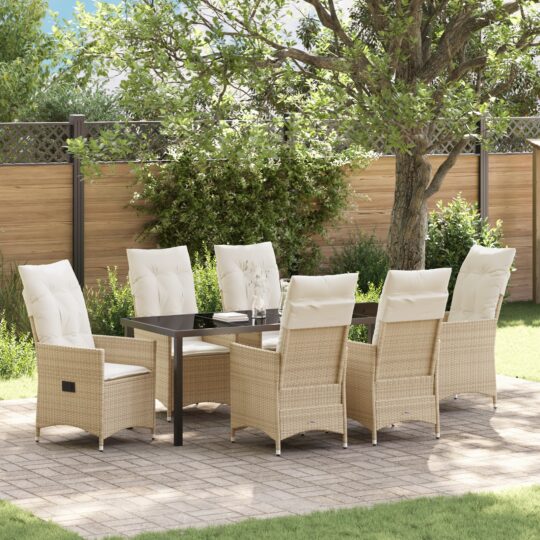Fii primul care scrii o recenzie pentru „Set de 7 piese de grădină cu perne Bej Ratan Poliester”