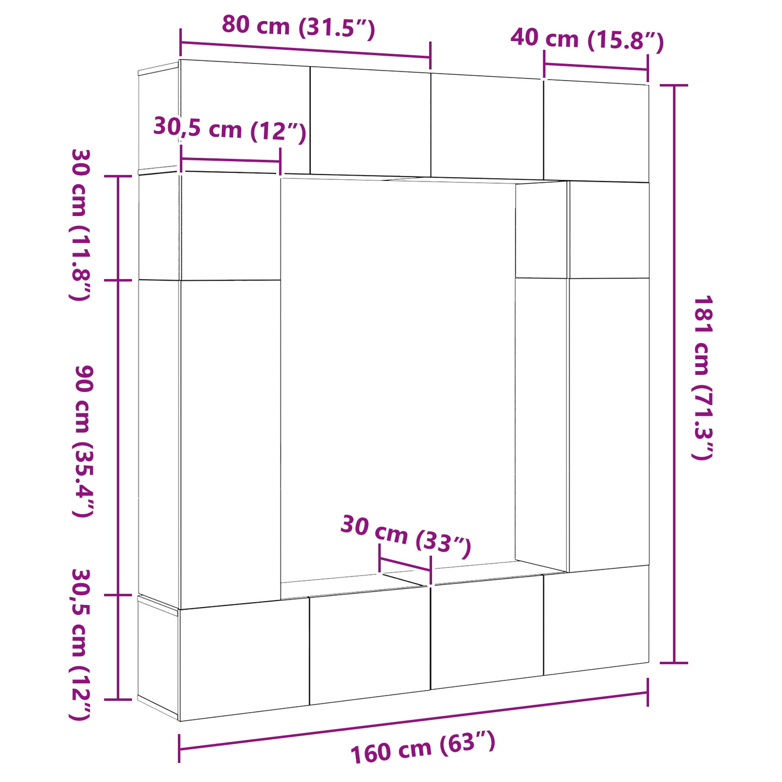 - Dimensiuni generale: 80 x 30 x 30 cm (L x l x î)