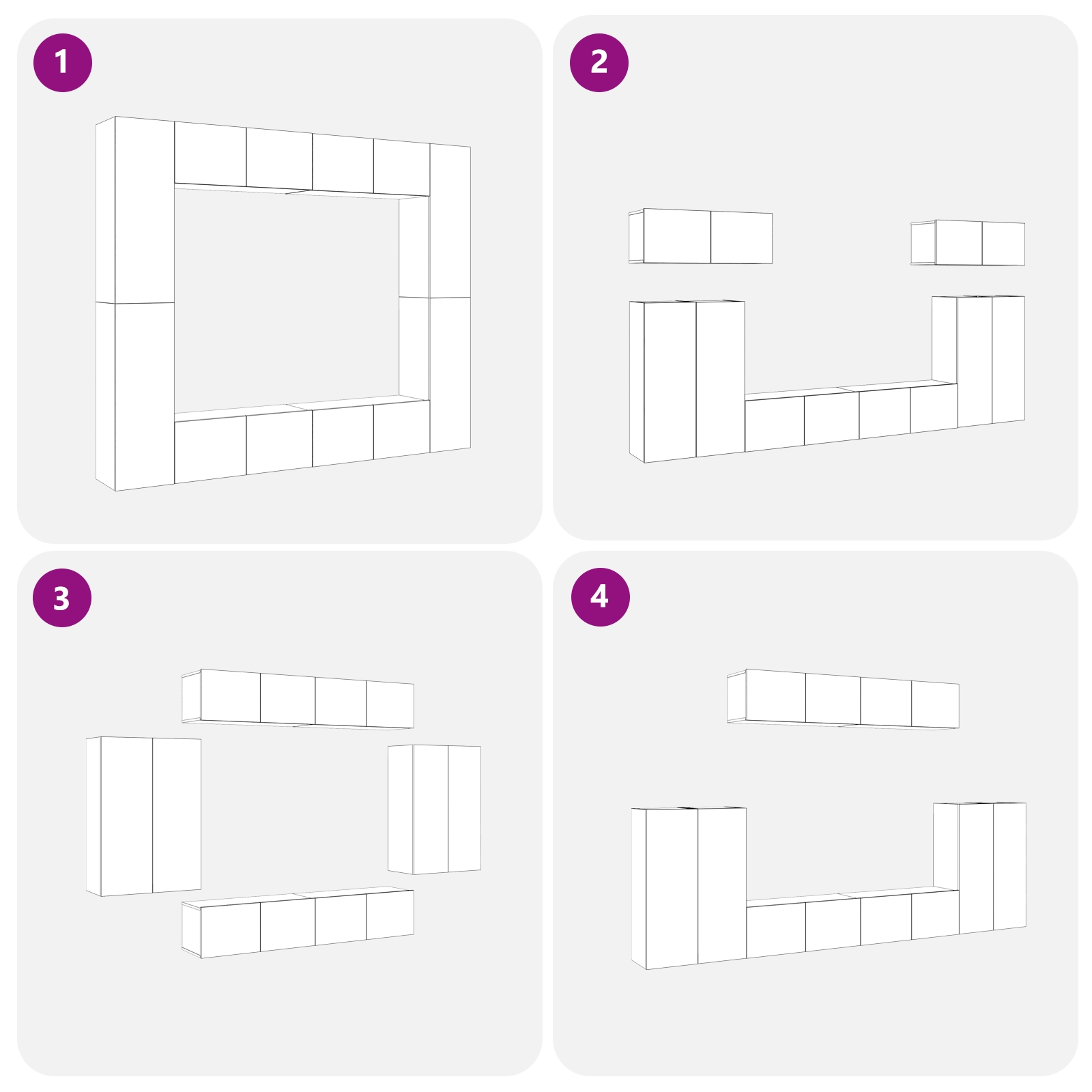 - Spațiu de depozitare abundent Ai multe opțiuni de depozitare cu compartimente, sertare și rafturi pentru a pune echipamente media, cărți sau obiecte decorative. Designul e gândit să valorifice la maxim spațiul, păstrând totul organizat, mai ales în apartamente mici.