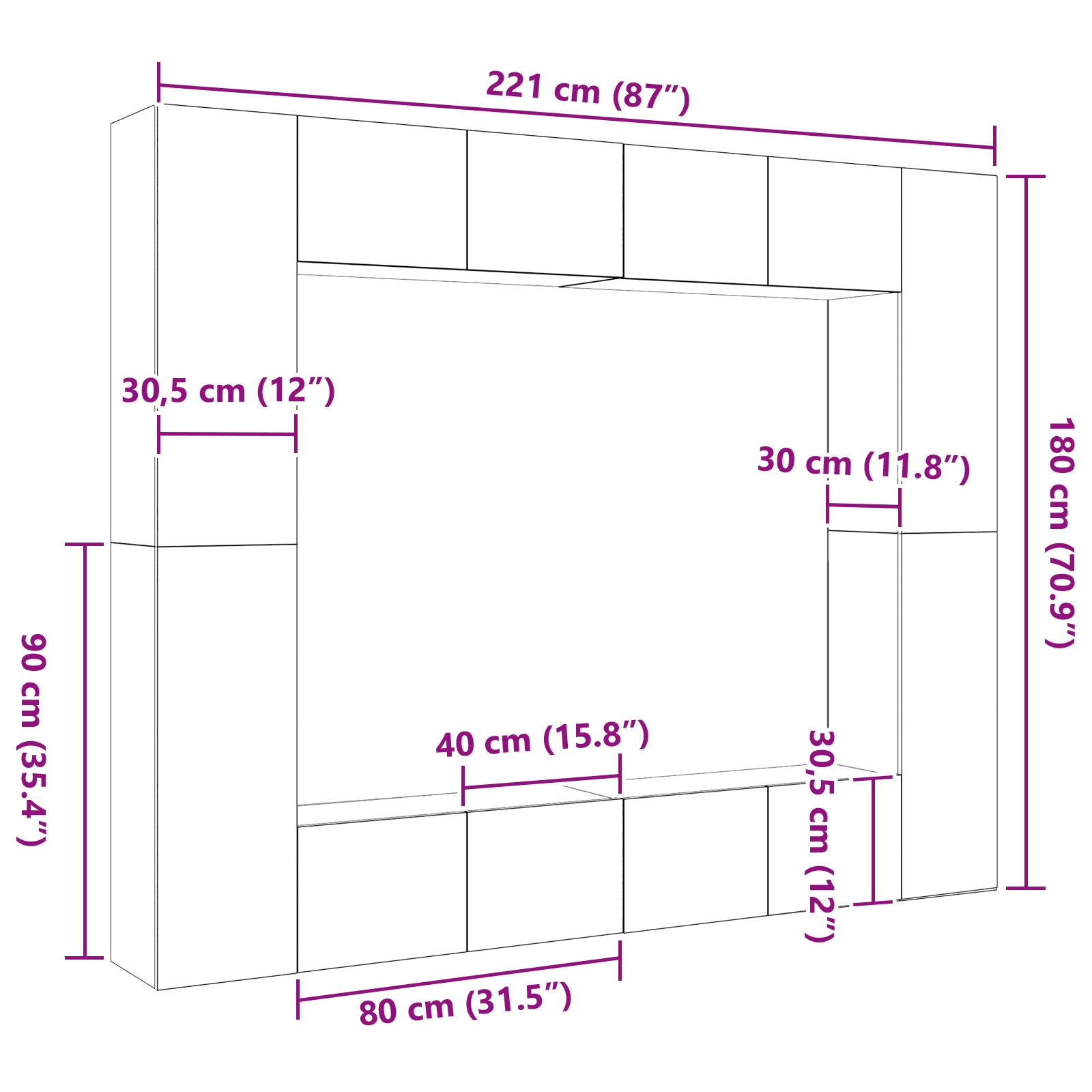 Cabinet TV 8 pcs Negru 221 x 30 x 180 cm Lemn compozit