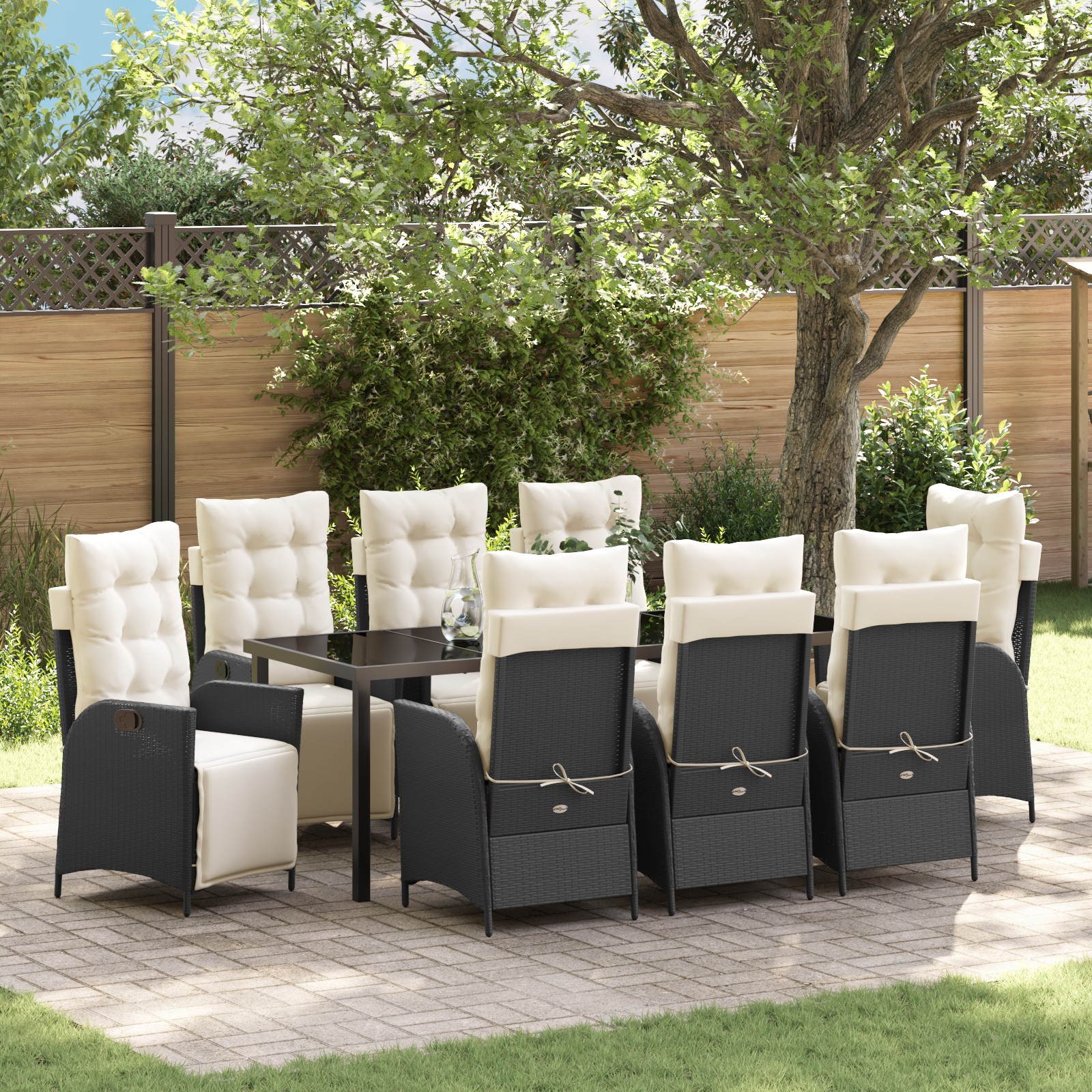 Set de 9 Mobilier de Grădină Negru din Poliratan