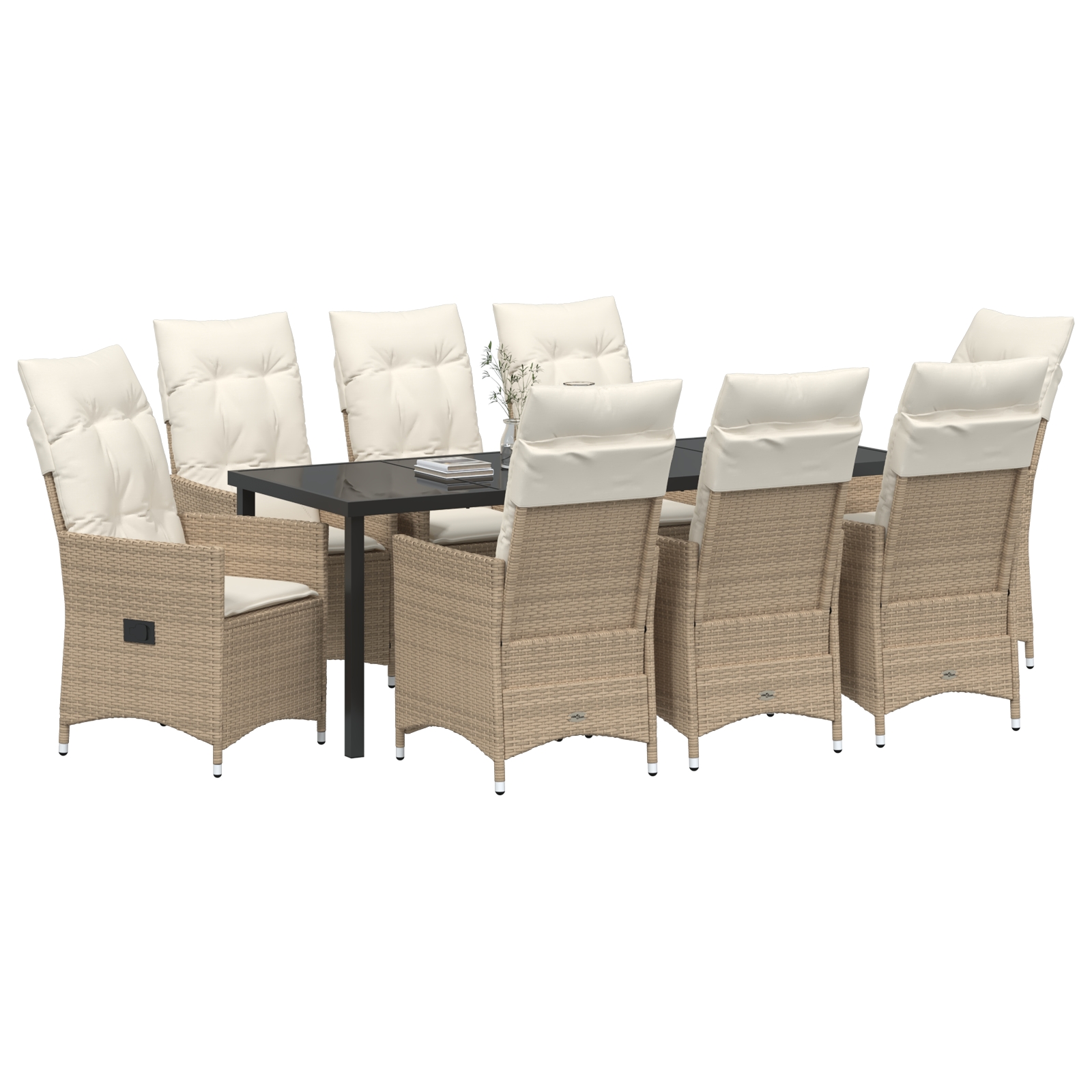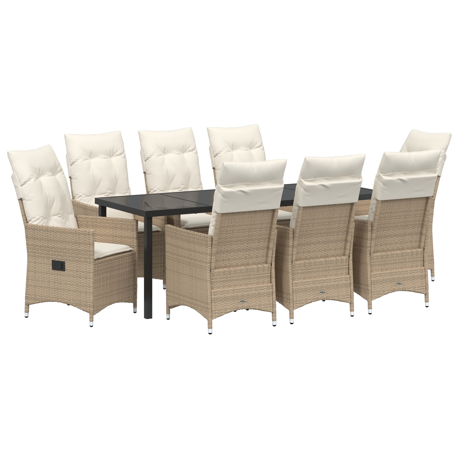 Set de 9 Piese pentru Cină în Grădină cu Perne Bej Ratan Polimeric