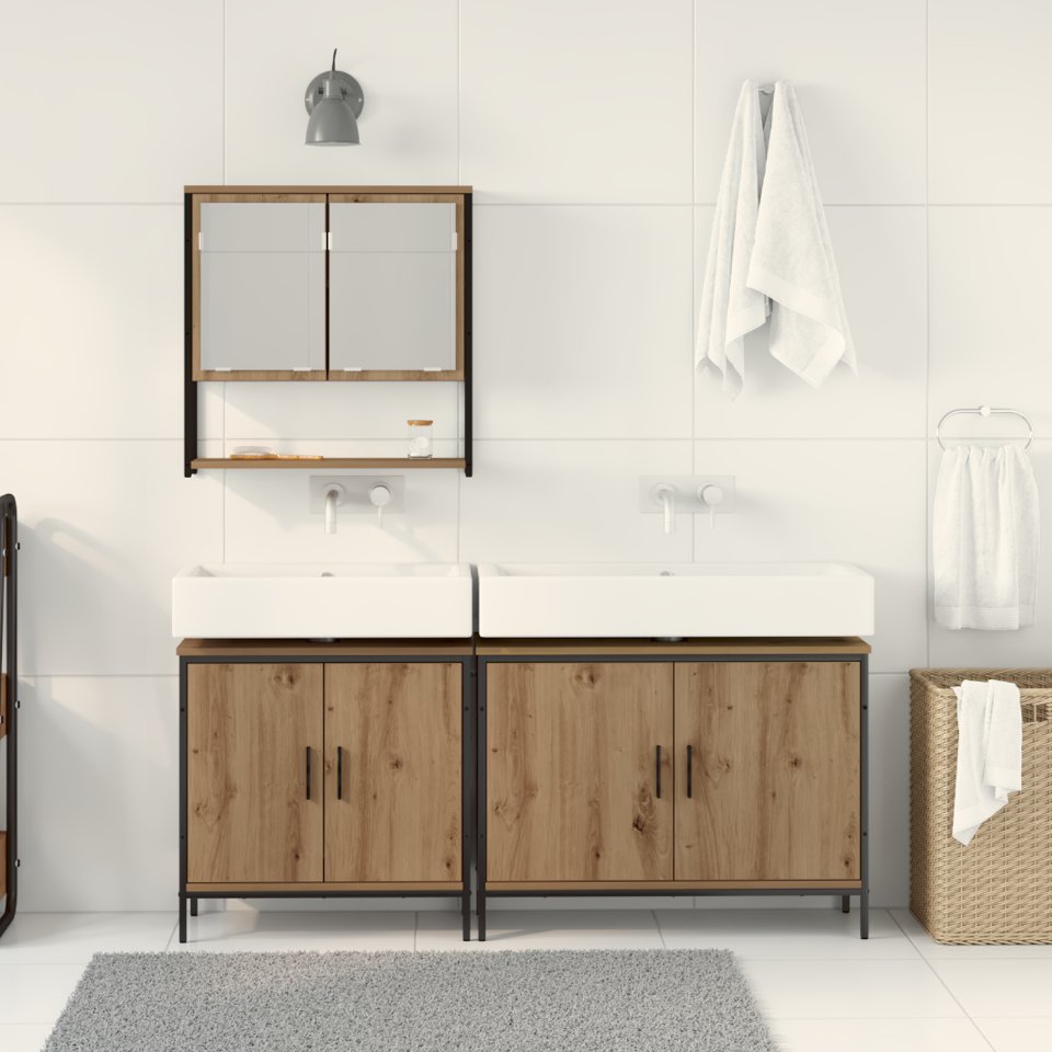 Setul ăsta de mobilă pentru baie de 3 piese combină stilul modern cu utilitatea. Finisajul made din stejar artezan nu doar că arată bine, dar oferă și mult spațiu de stocare, ideal pentru oricine vrea să-și organizeze baia.