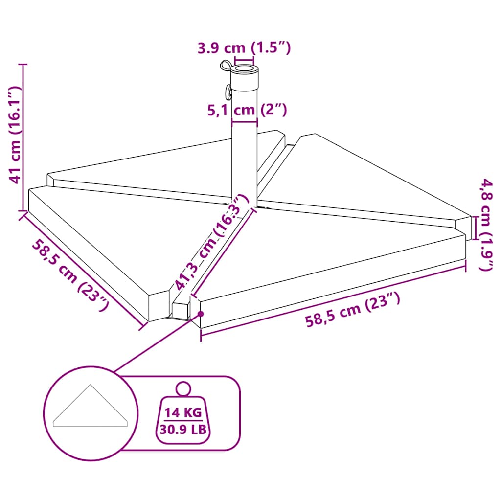 - Robustă și stabilă: Fabricată din granit puternic și cu o greutate totală de 56 kg, această greutate de bază este extrem de stabilă și asigură umbrela dumneavoastră să stea nemișcată în zilele cu vânt.