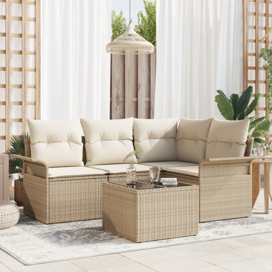 Set de canapele pentru grădină cu pernă 5 pcs Bej Rattan poli