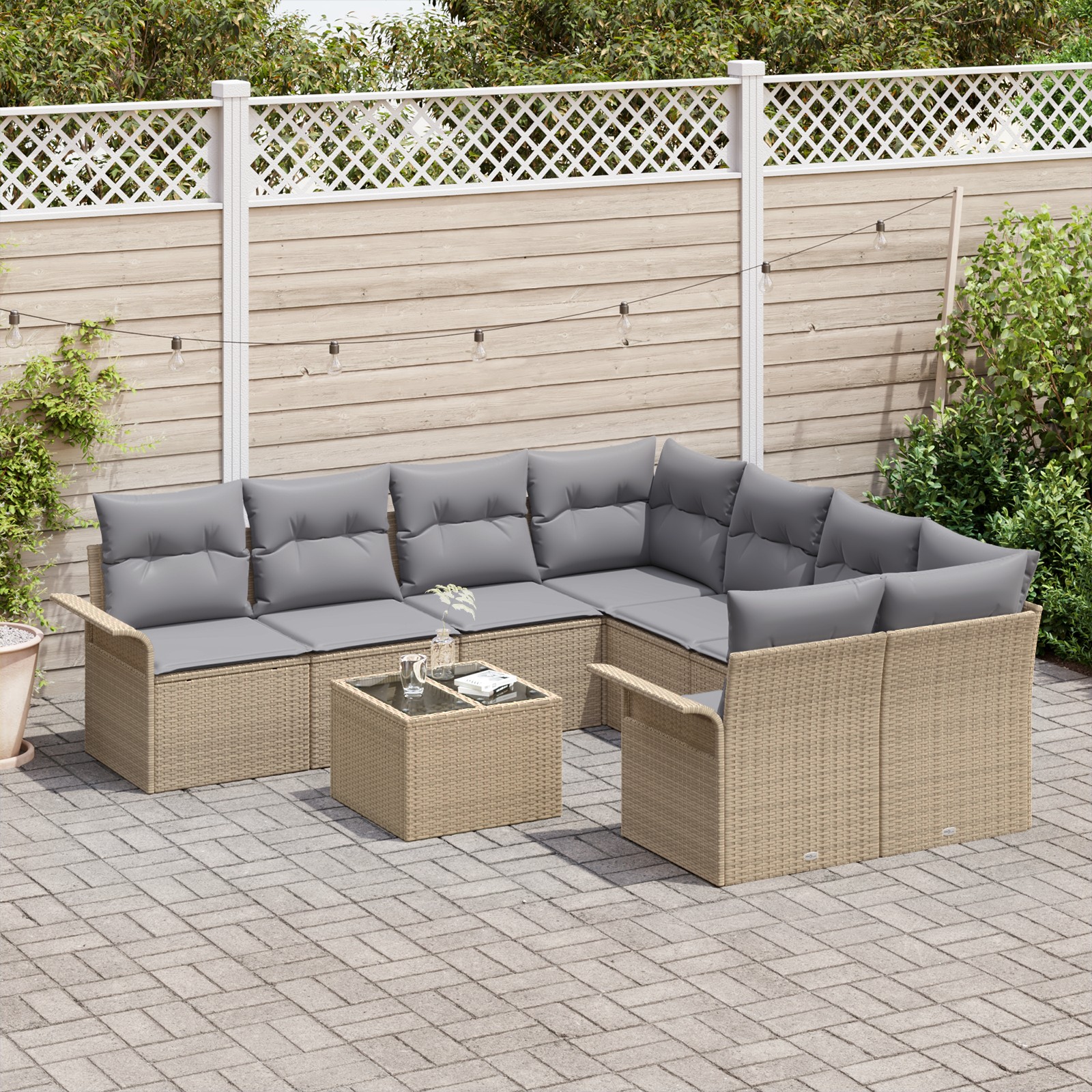 Set de canapele pentru grădină 9 pcs Bej și gri 55 x 55 x 37 cm