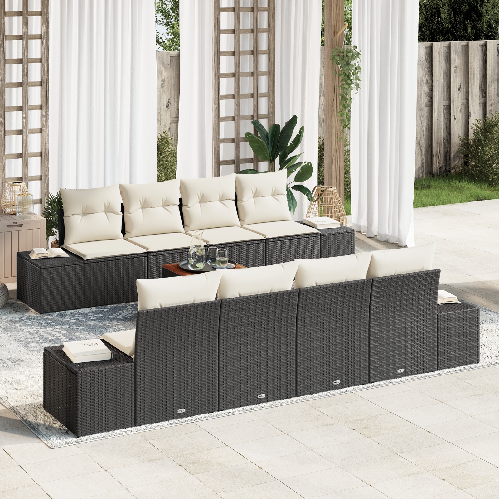 Set de canapele pentru grădină cu pernă 9 pcs Negru Rattan poli