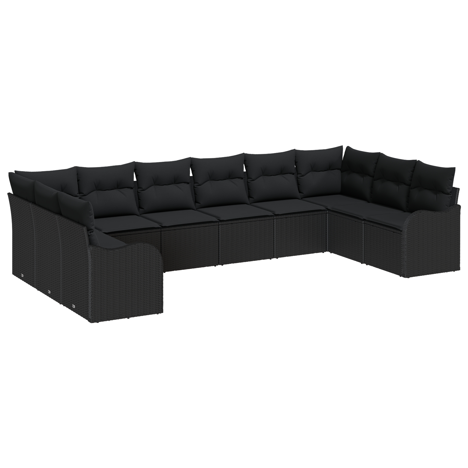 Set de canapele pentru grădină 10 pcs Negru Rattan poli
