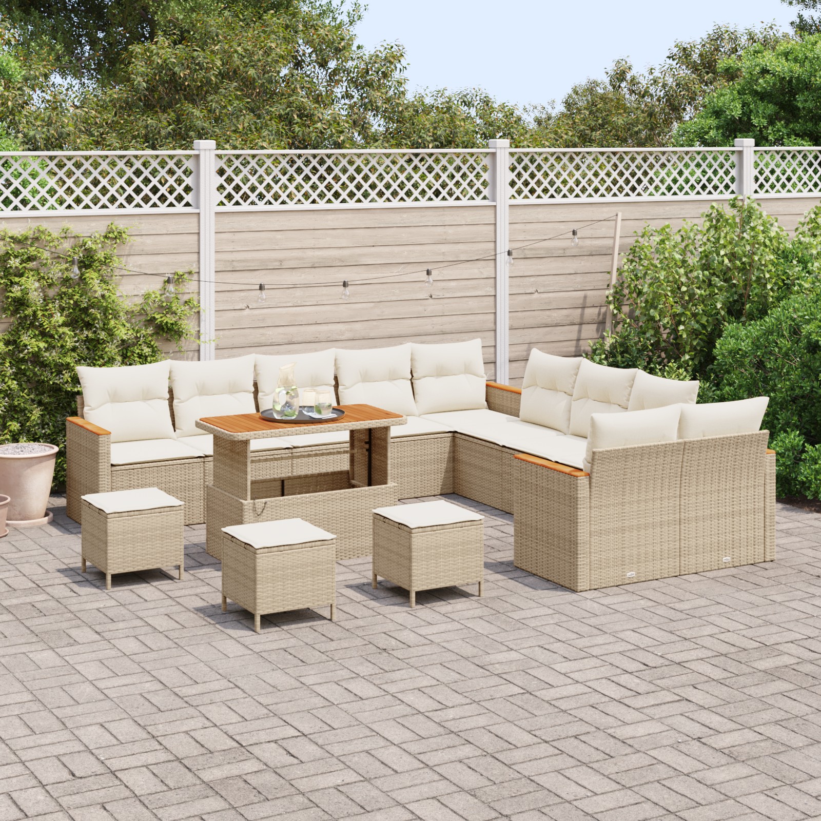 Set de canapele pentru grădină cu pernă 14 pcs Bej Rattan poli
