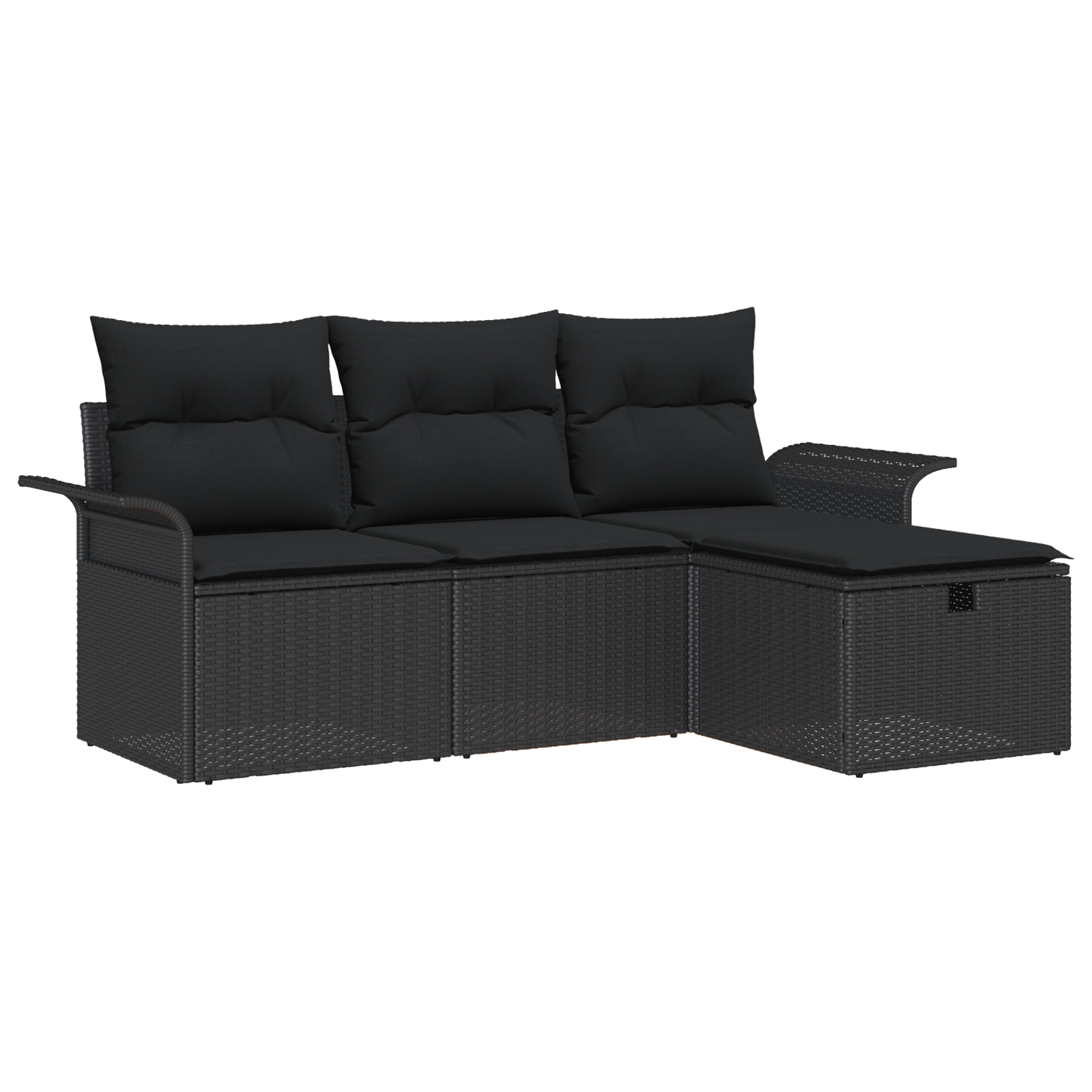 Set de canapele pentru grădină cu pernă 4 pcs Negru Rattan poli
