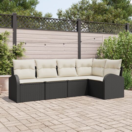 Set de canapele pentru grădină cu pernă 5 pcs Negru Rattan poli