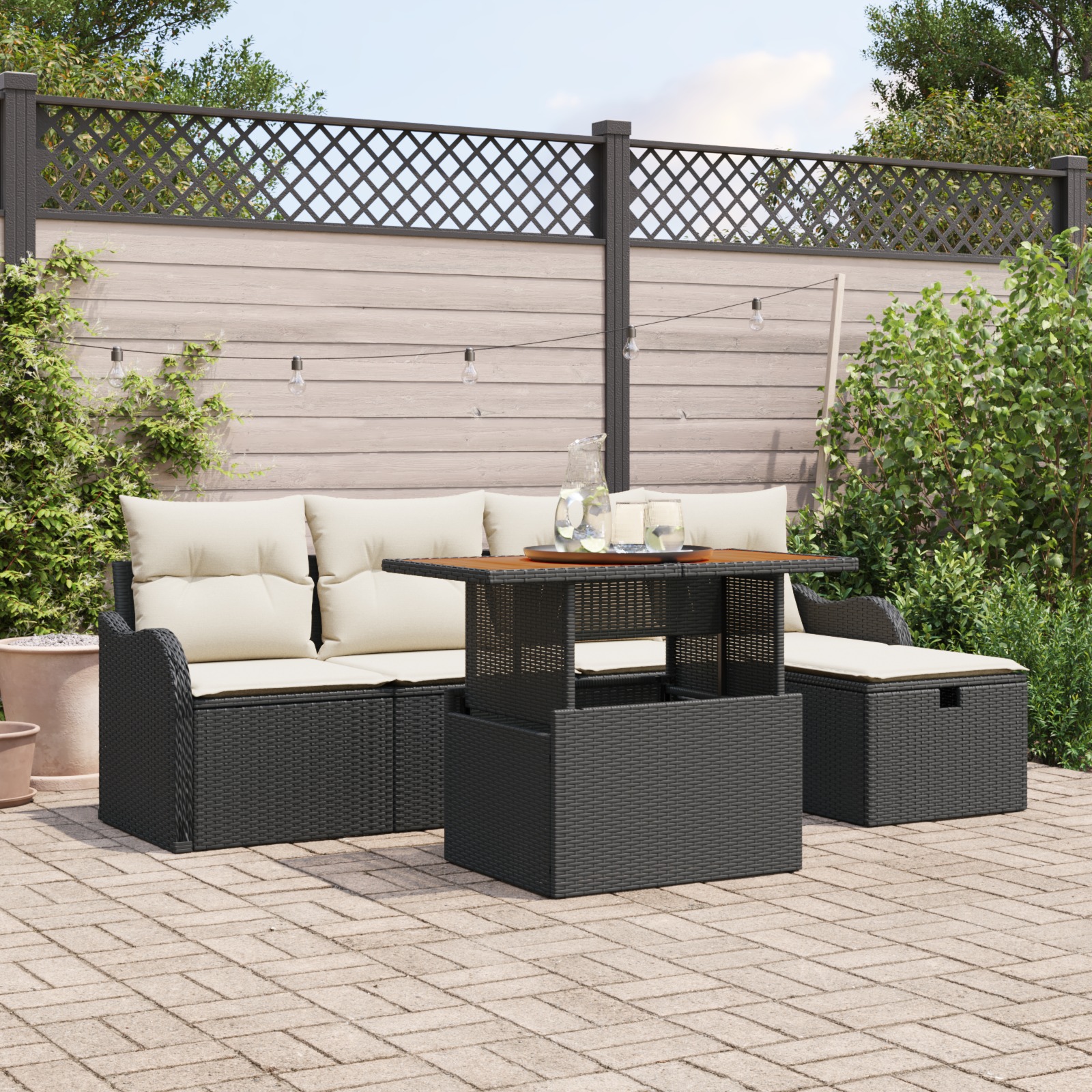 Set de canapele pentru grădină cu pernă 6 pcs Negru Rattan poli