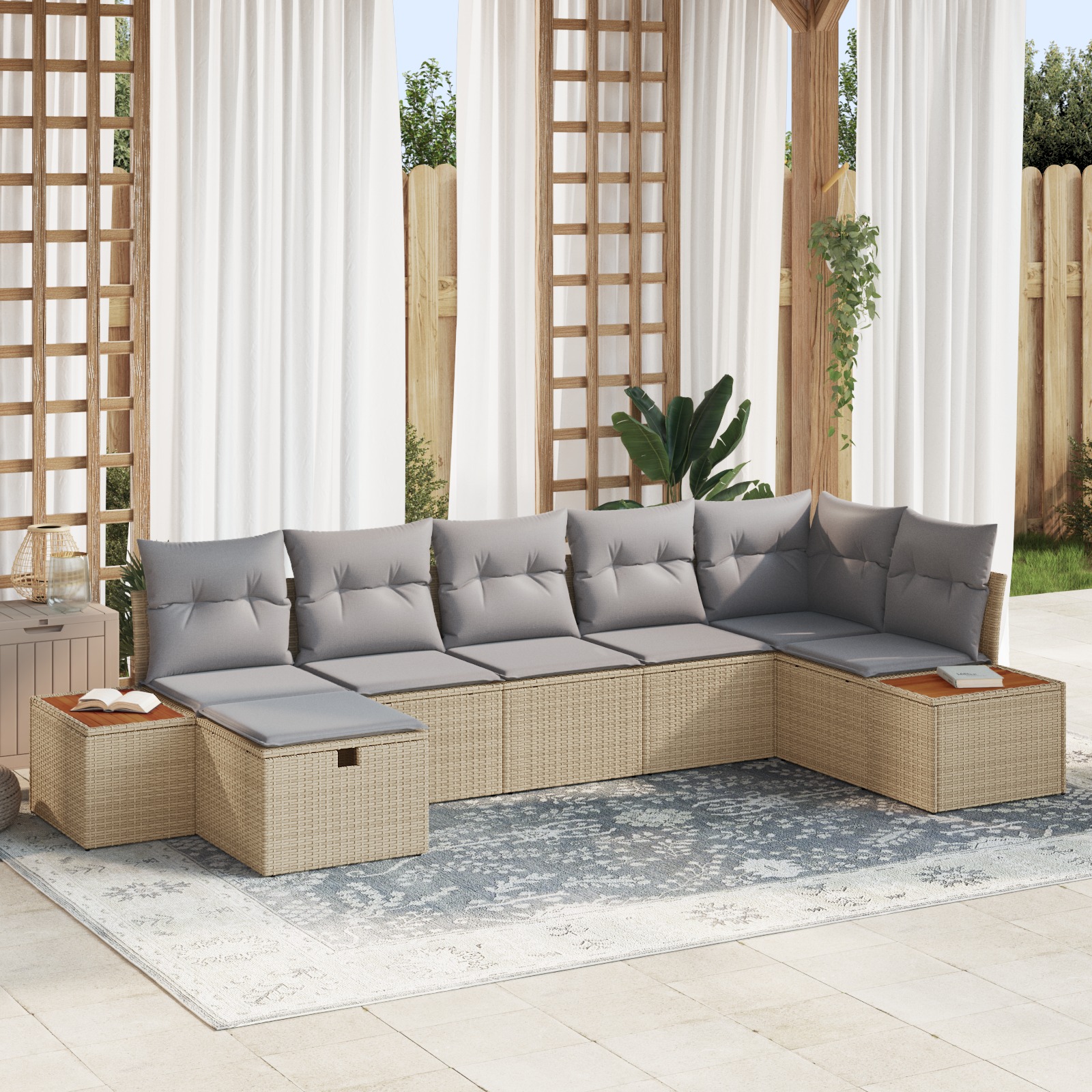 Set de canapele pentru grădină cu pernă 7 pcs Bej Rattan poli