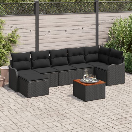 Set de canapele pentru grădină 8 pcs Negru Rattan poli