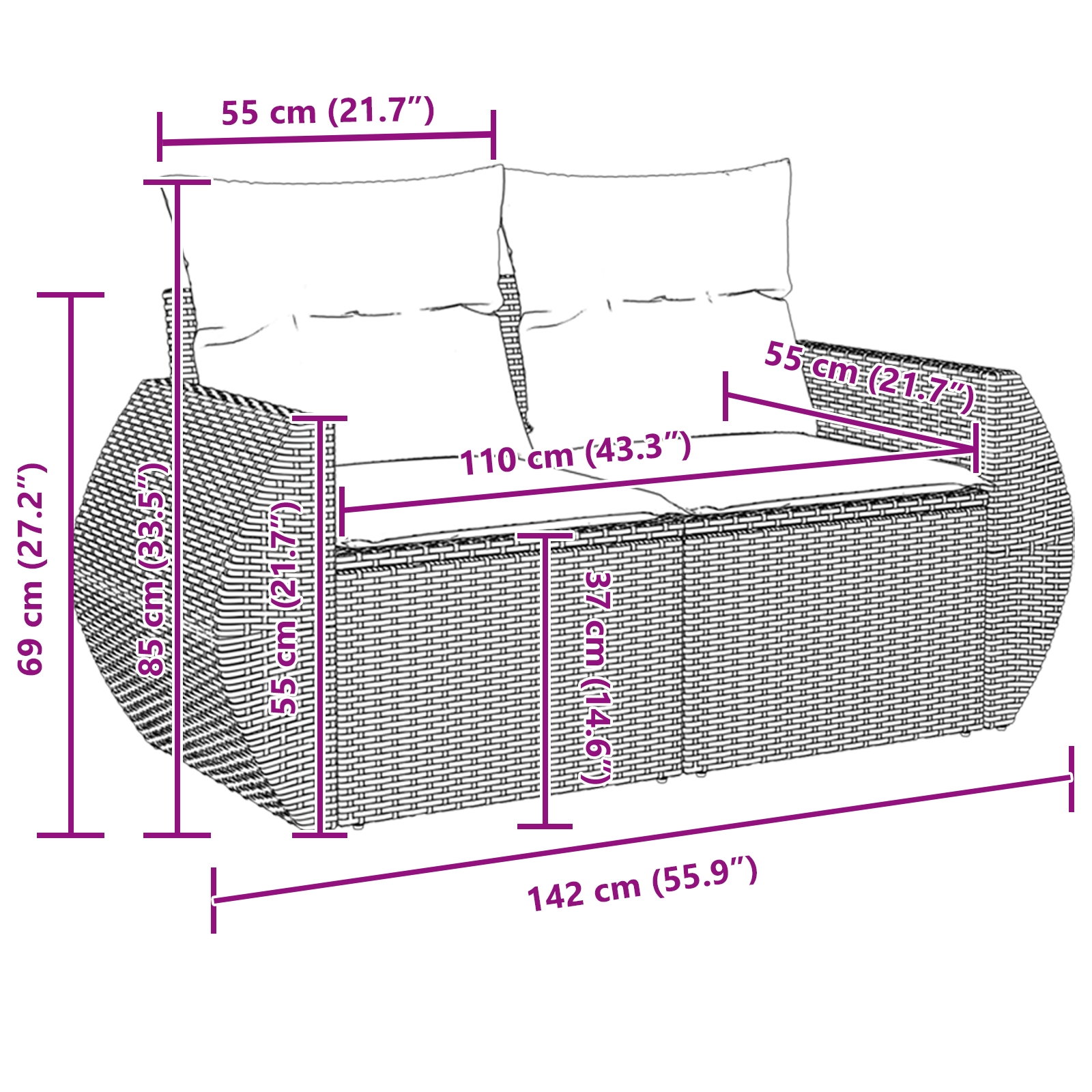 - Utilizări Versatile: Acest set de canapele se potrivește perfect în orice aranjament de grădină, terasă sau patiu, oferind loc suficient pentru adunările de vară. Este o alegere adaptabilă pentru spații de la grădini întinse până la terase mai compacte, creând un hub primitor pentru familie și prieteni.